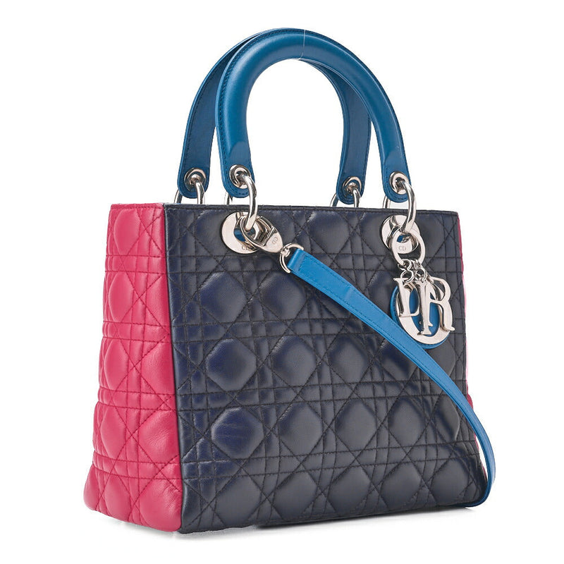 Gebrauchte Damenhandtasche Cannage Lammleder Mehrfarbig Marineblau Goldfarbene Hardware Gebraucht