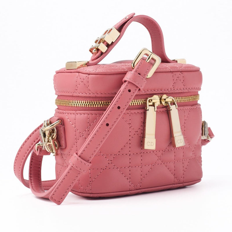 Gebrauchte Lady Vanity Cannage 2WAY Schultertasche Lammleder Pink Goldfarbene Hardware Gebraucht