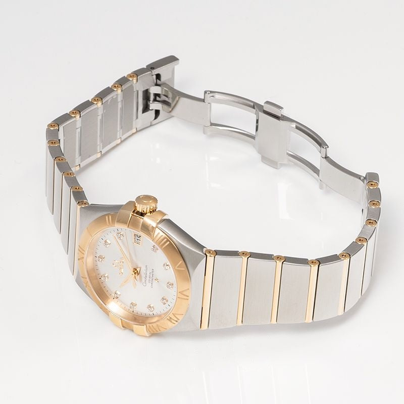 • Gehäusematerial: Edelstahl, 18 Karat Gelbgold