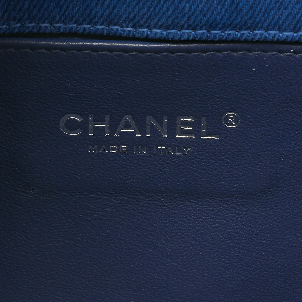 Diese Schultertasche aus luxuriösem Denim in sattem Blauton präsentiert das ikonische Design von CHANEL. Die silbernen Metallbeschläge verleihen ihr einen Hauch von modernem Flair, während die Matelassé-Steppung ihr einen zeitlosen Reiz verleiht. Mit den Maßen ca. B 25 cm x H 15 cm x T 7 cm ist sie kompakt und dennoch geräumig genug für alles Wichtige.