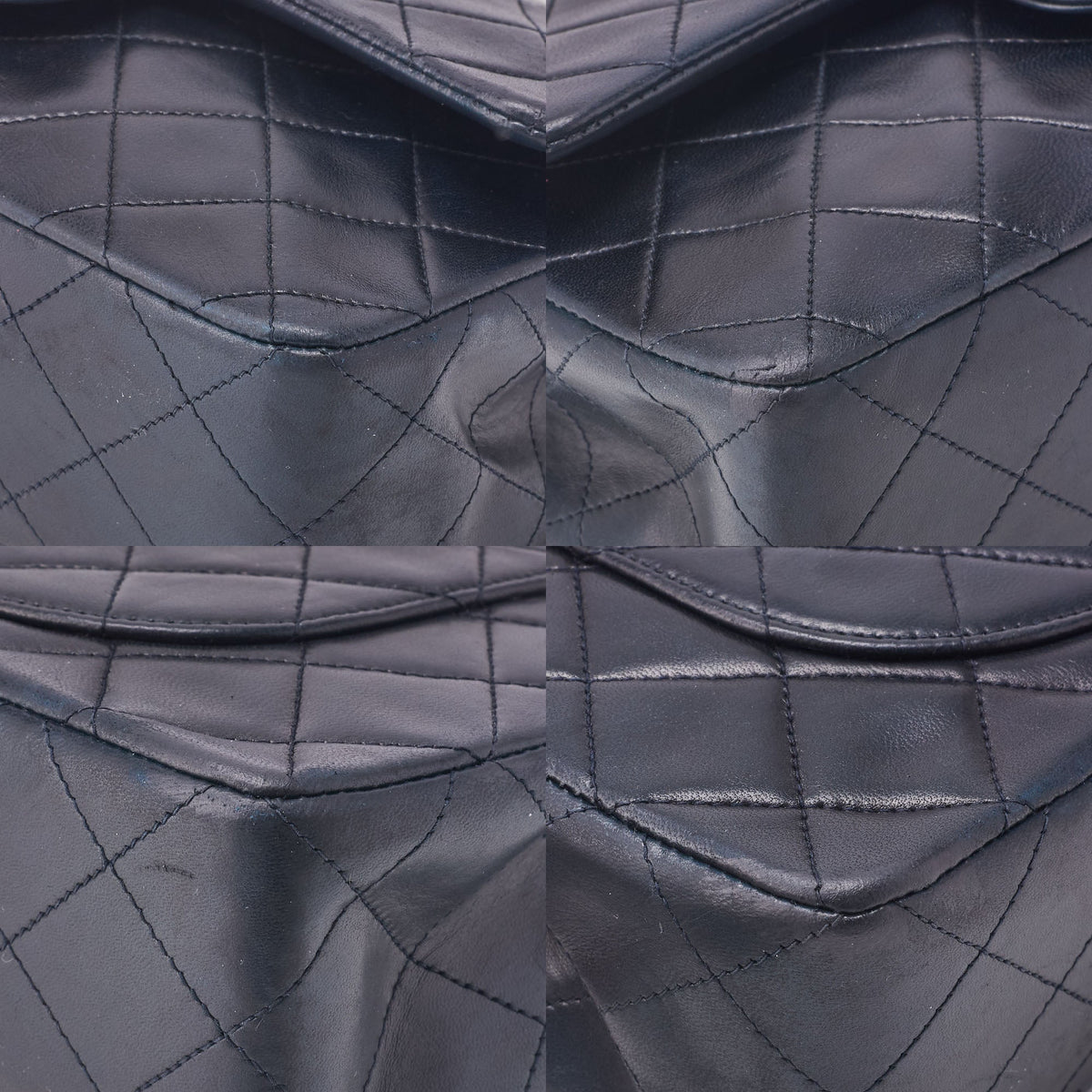 Pre-Owned Kette Schultertasche Matelassé Doppelklappe Lammleder Dunkelblau Goldfarbene Hardware Pre-Owned