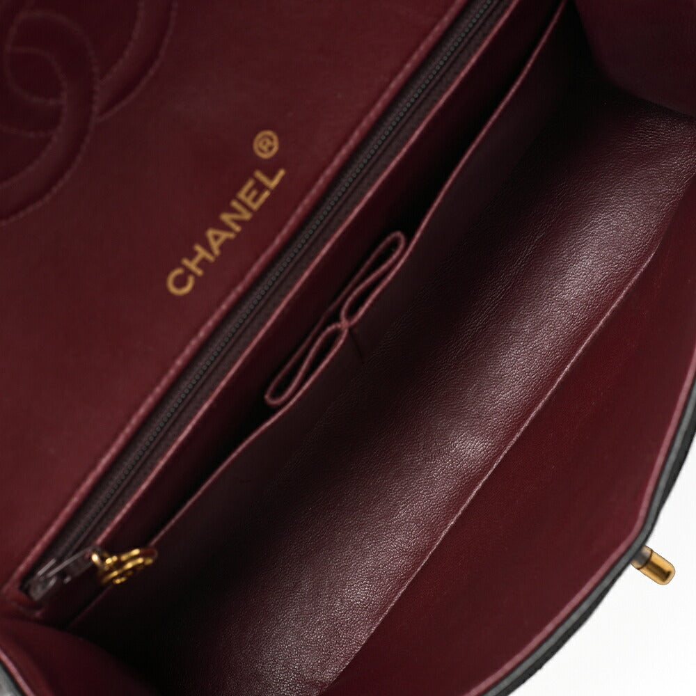 Pre-Owned Kette Schultertasche Matelassé Doppelklappe Lammleder Schwarz Goldfarbene Hardware Pre-Owned