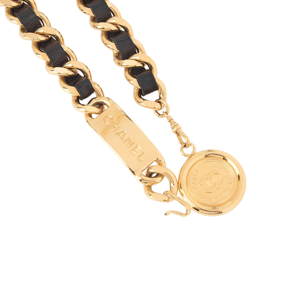 Pre-Owned Cocomark Chain Belt GP x Leather Black x Gold Gold-Tone Hardware, Pre-Owned