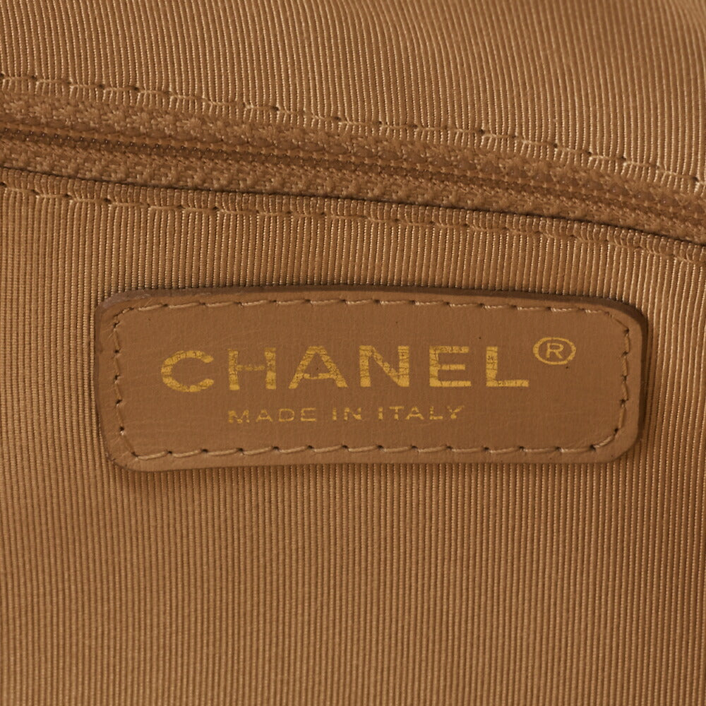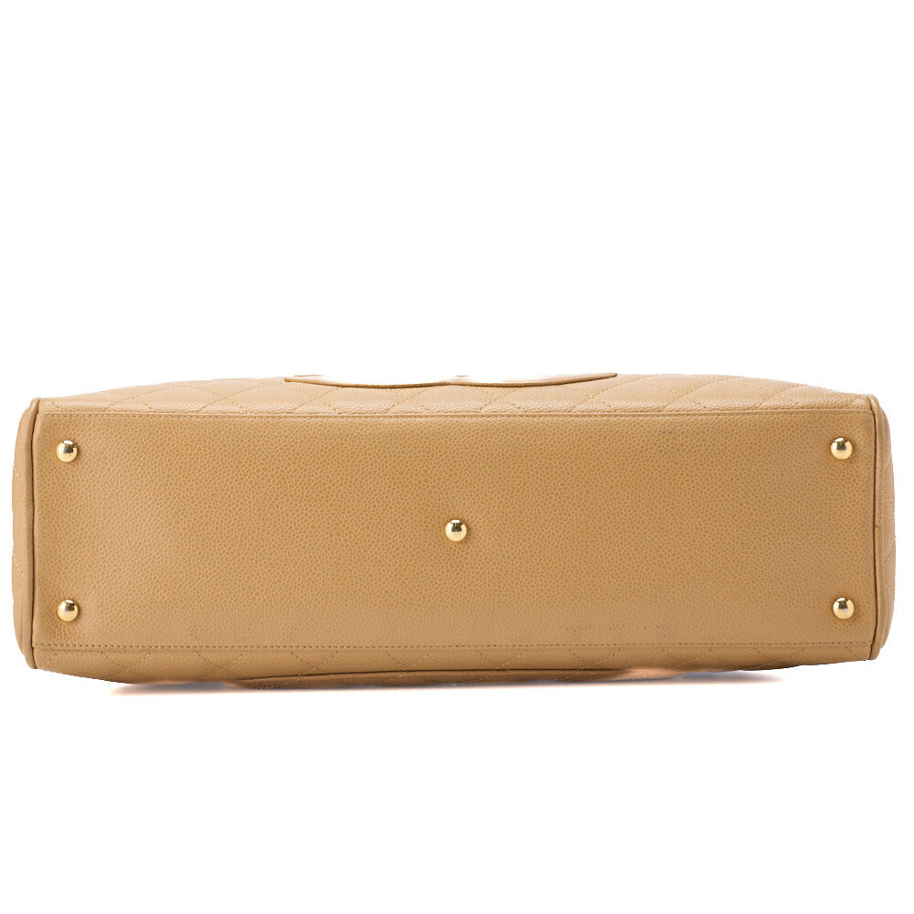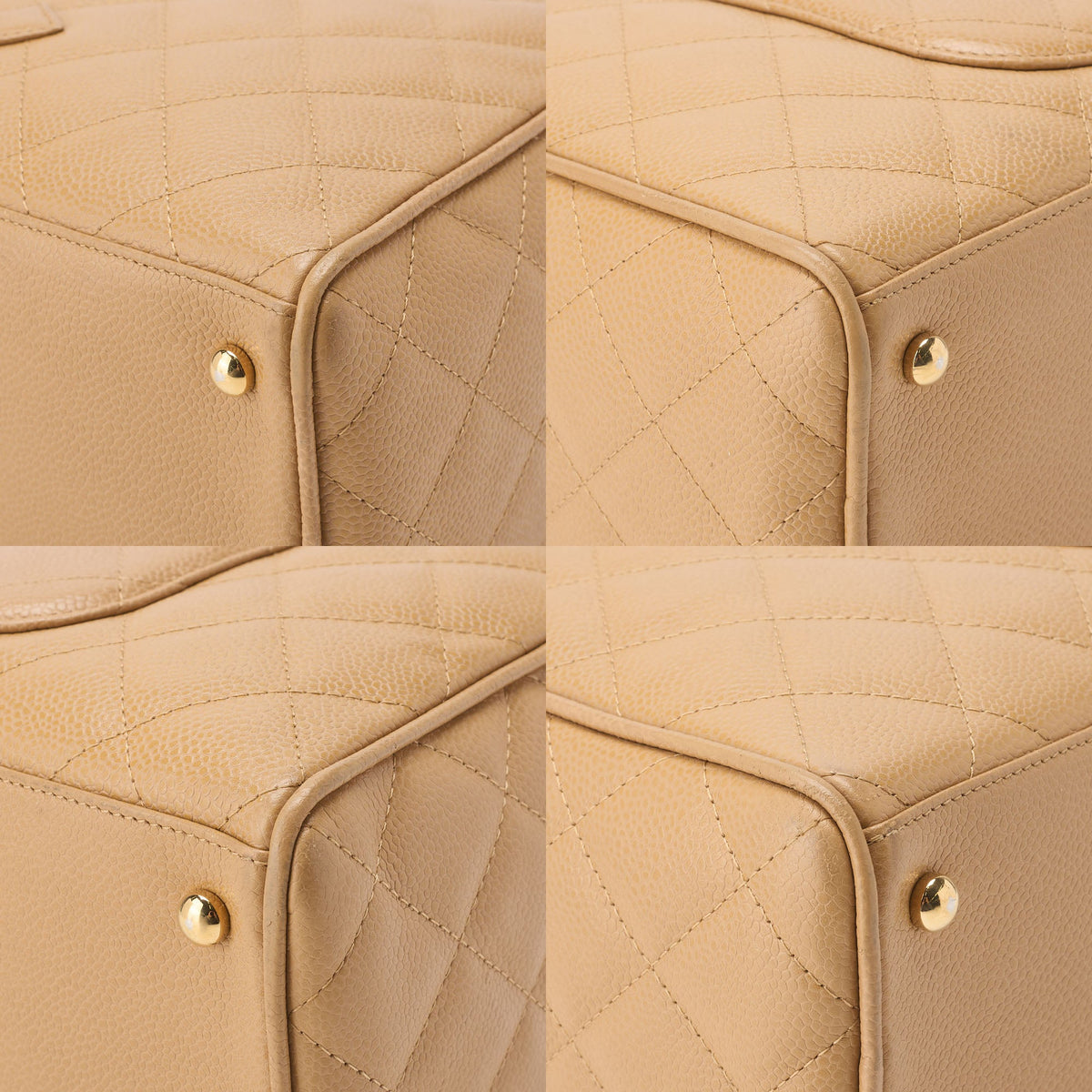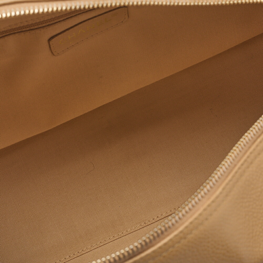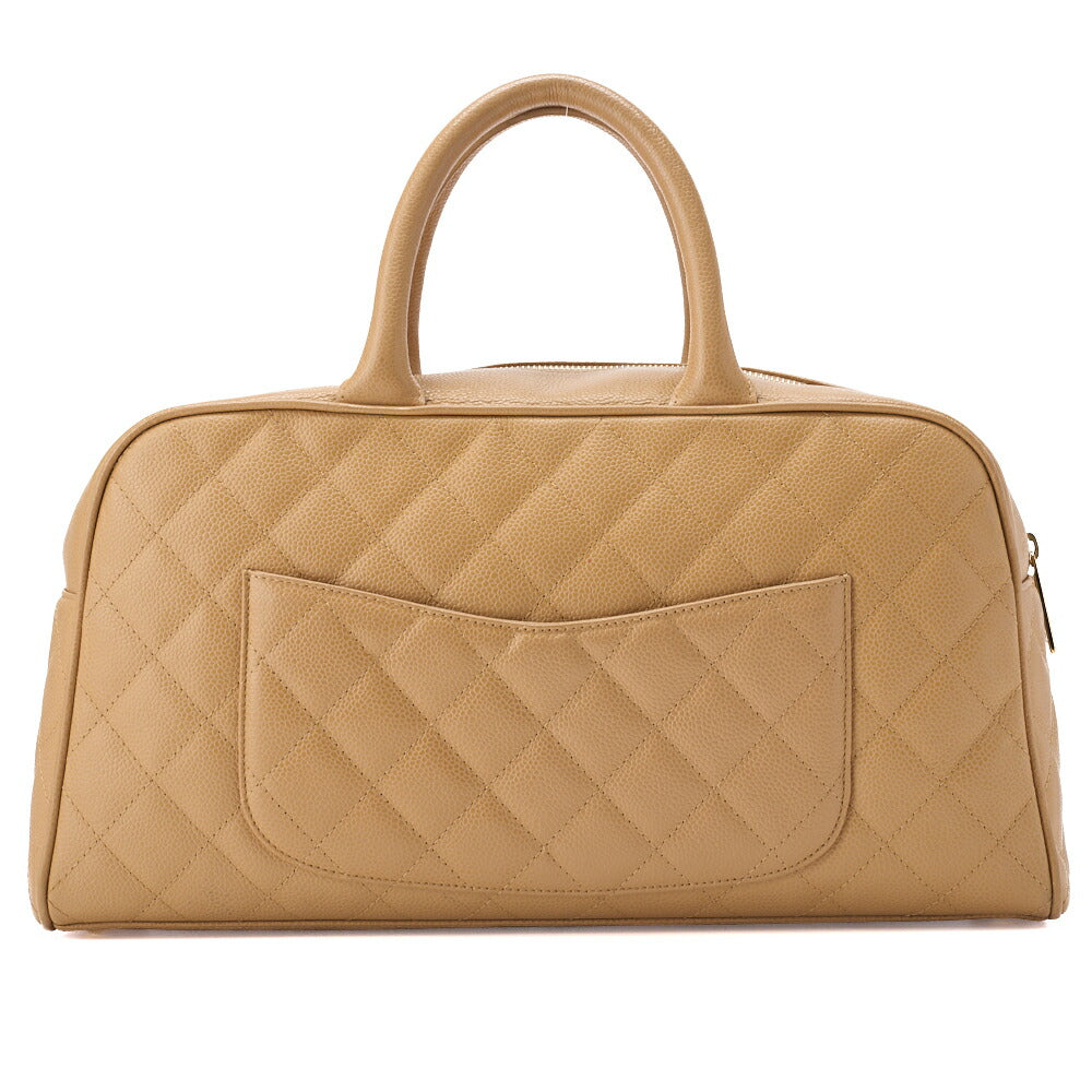 Wir präsentieren die exquisite CHANEL Boston Bag aus luxuriösem Caviar Skin in zeitlosem Beige mit edlen Goldbeschlägen. Dieses elegante Stück präsentiert sich mit dem ikonischen Matelassé-Coco-Logo der Marke und ist ein Must-have für jede modebewusste Frau.