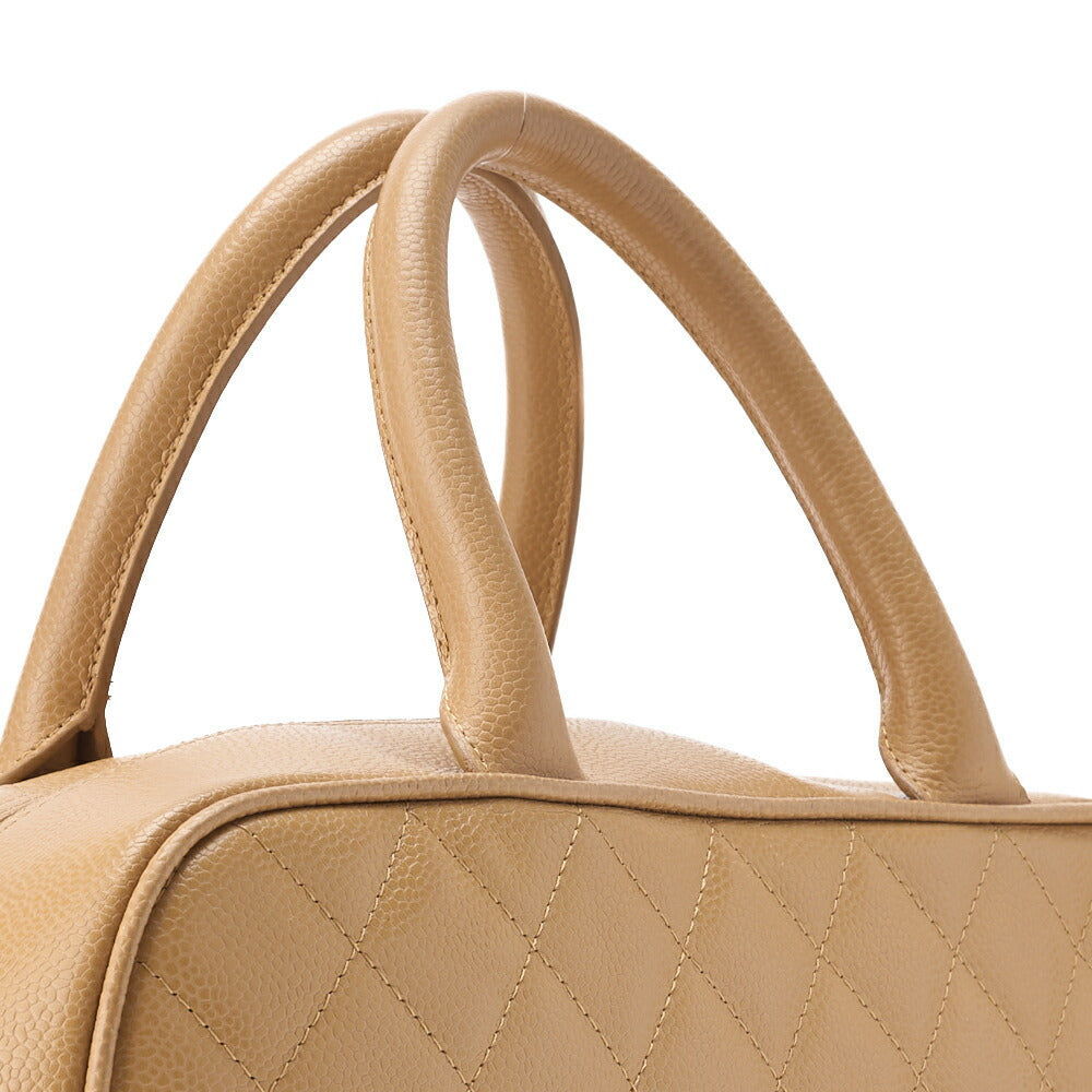 Gebrauchte Handtasche Boston Bag Matelassé Caviar Skin Beige Goldfarbene Hardware Gebraucht