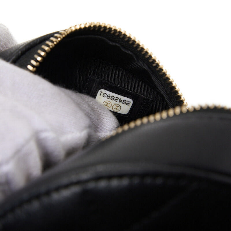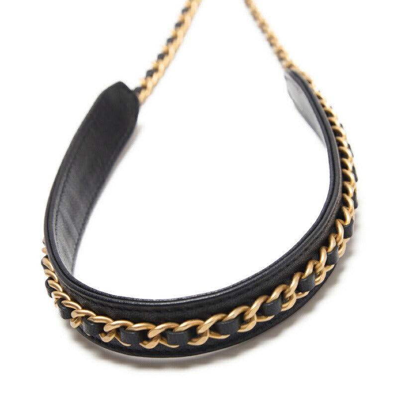 Gebrauchte Umhängetasche, Matelassé, Coco Mark, Kettenschulter, Lammleder, Schwarz, Goldfarbene Hardware, Gebraucht