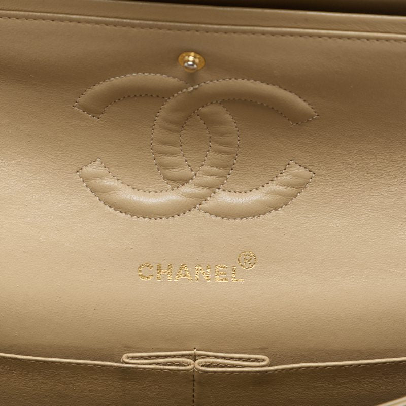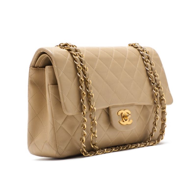 Tauchen Sie ein in die Welt des Luxus mit der CHANEL Matelassé Double Flap Chain Schultertasche aus elegantem beigefarbenem Lammleder mit schicken Goldbeschlägen. Dieses atemberaubende Stück vereint zeitloses Design mit moderner Funktionalität und ist ein Must-have für die anspruchsvolle Frau.