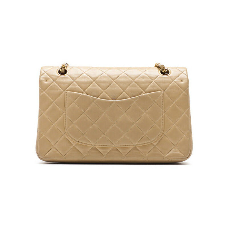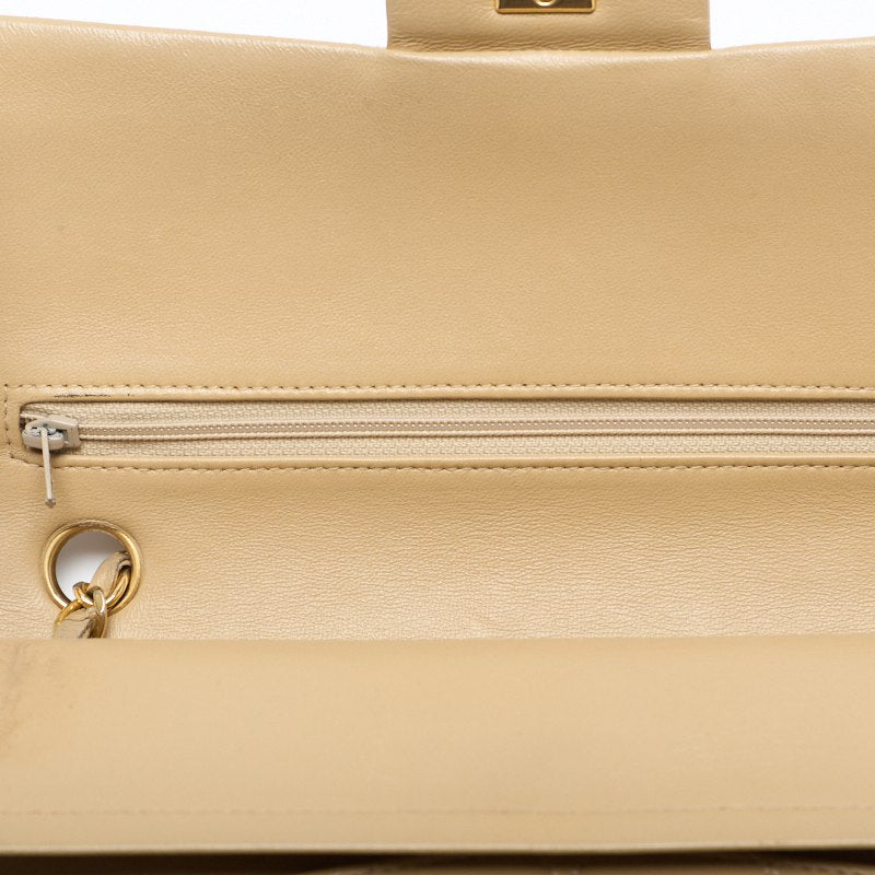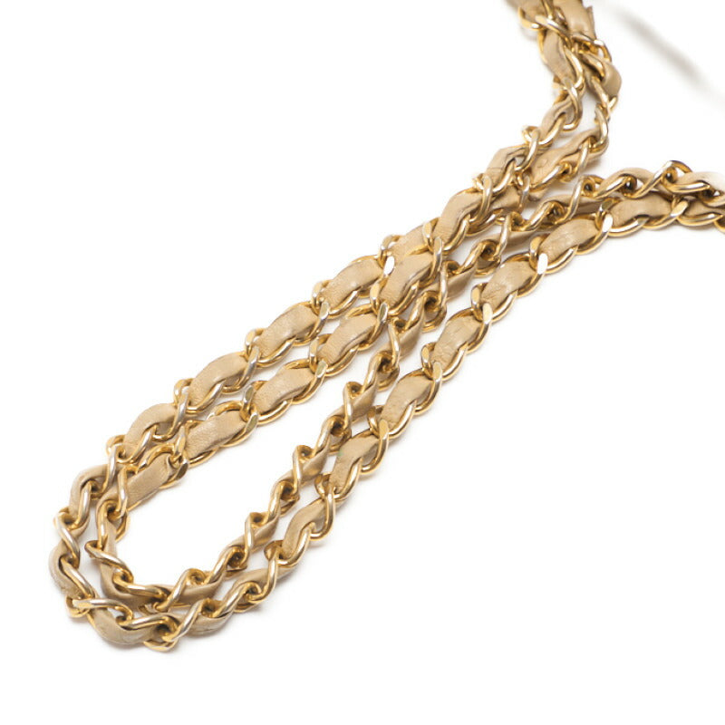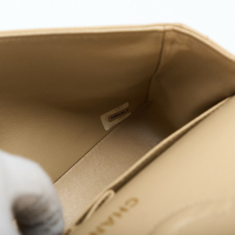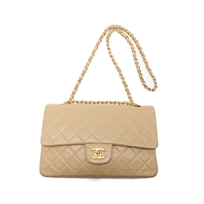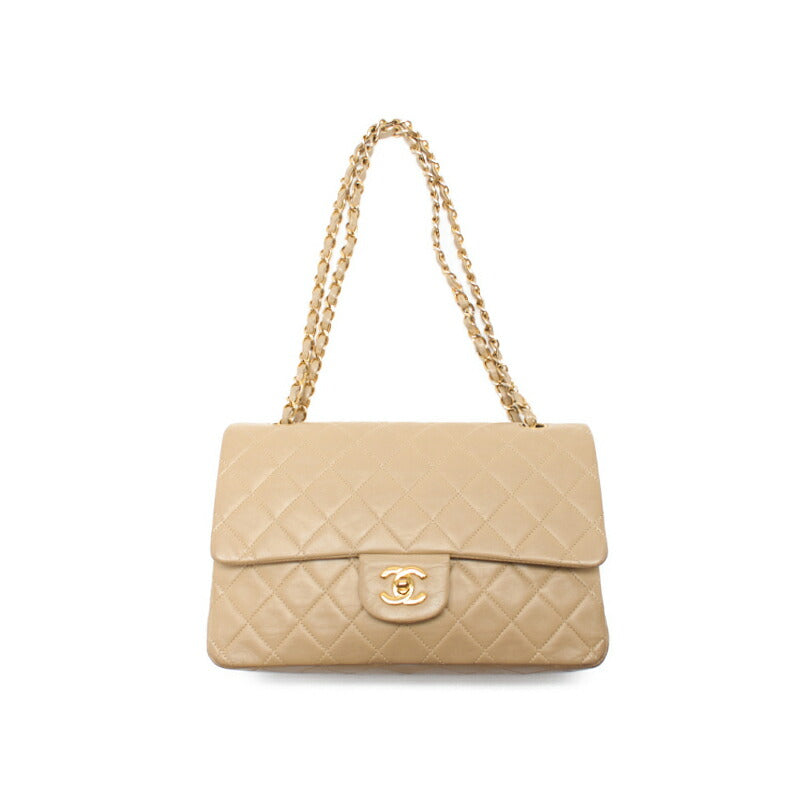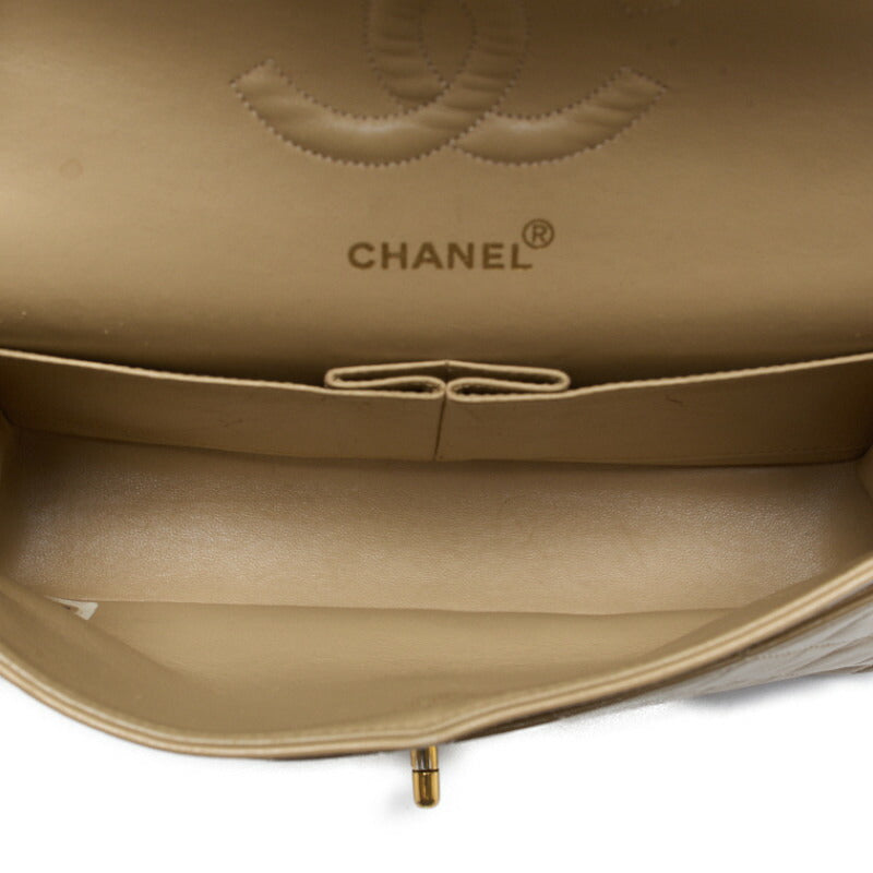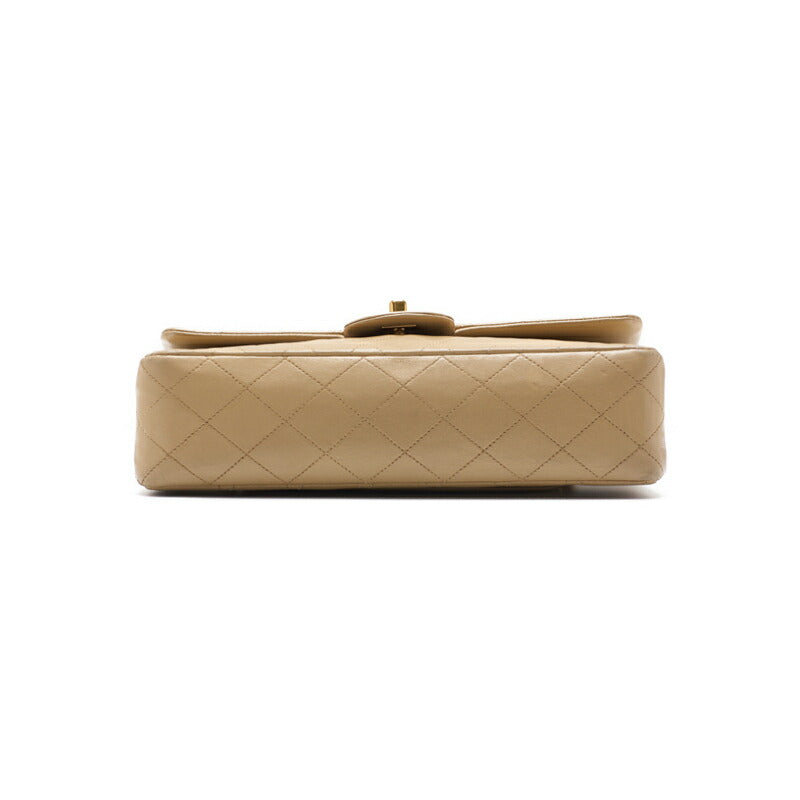 Pre-Owned Umhängetasche Matelassé Doppelklappe Kette Schulter Lammleder Beige Goldfarbene Hardware Pre-Owned