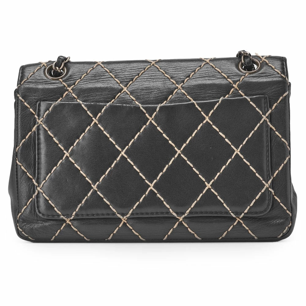 Erweitern Sie Ihre Accessoire-Auswahl mit der CHANEL Matelassé Wild Stitch Turn Lock Single Flap Chain Shoulder Bag – einer atemberaubenden Kombination aus zeitloser Eleganz und moderner Raffinesse. Gefertigt aus luxuriösem Kalbsleder in schickem Schwarz und Beige, ergänzt diese Schultertasche jedes Outfit und setzt gleichzeitig ein starkes Mode-Statement.