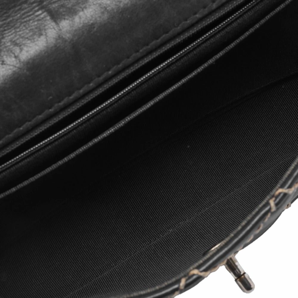 Pre-Owned Schultertasche, Matelasse Wild Stitch Drehverschluss, Kalbsleder, Schwarz, Silberfarbene Metallteile, Pre-Owned