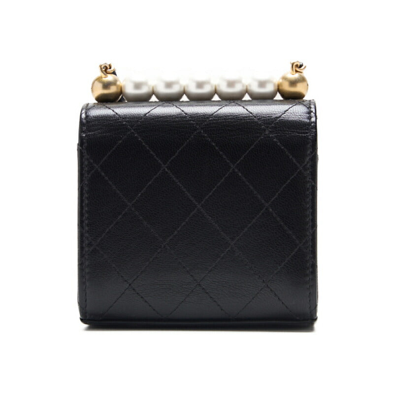 Pre-Owned Mini Schultertasche Matelassé Perlenkette Lammleder Schwarz Goldfarbene Hardware Pre-Owned