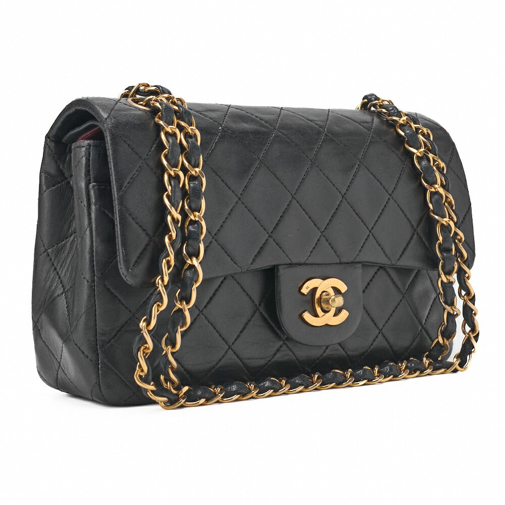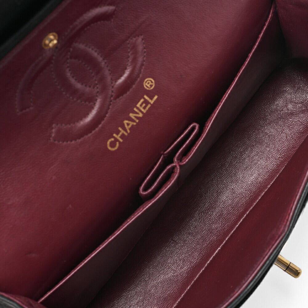Pre-Owned Schultertasche Matelasse 23 Doppelklappe Kette Lammleder Schwarz Goldfarbene Hardware Pre-Owned