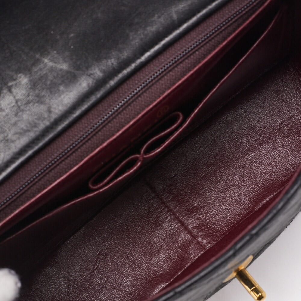 Pre-Owned Schultertasche Mini Matelassé Lammleder Schwarz Goldfarbene Hardware Pre-Owned