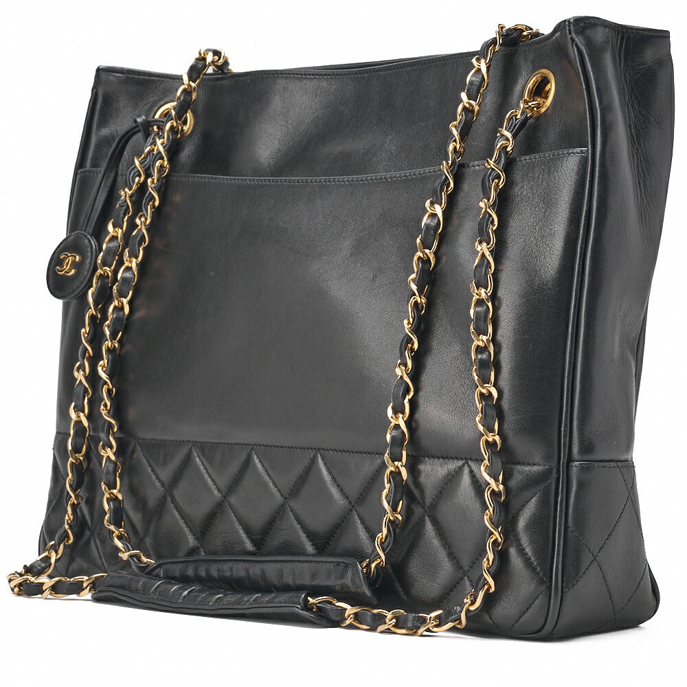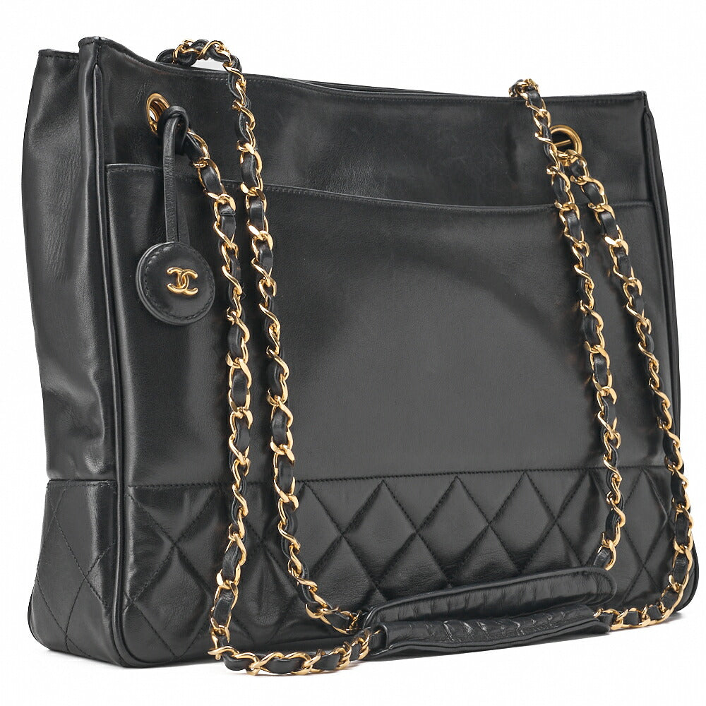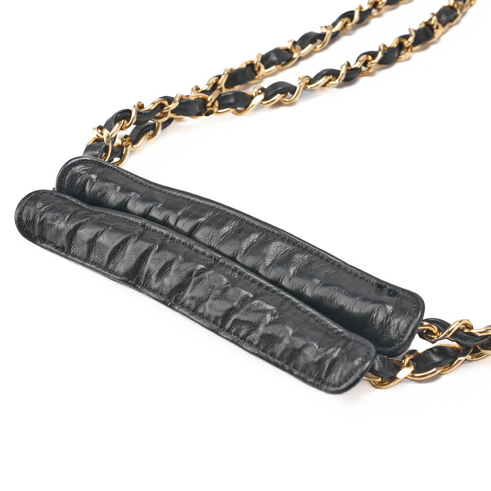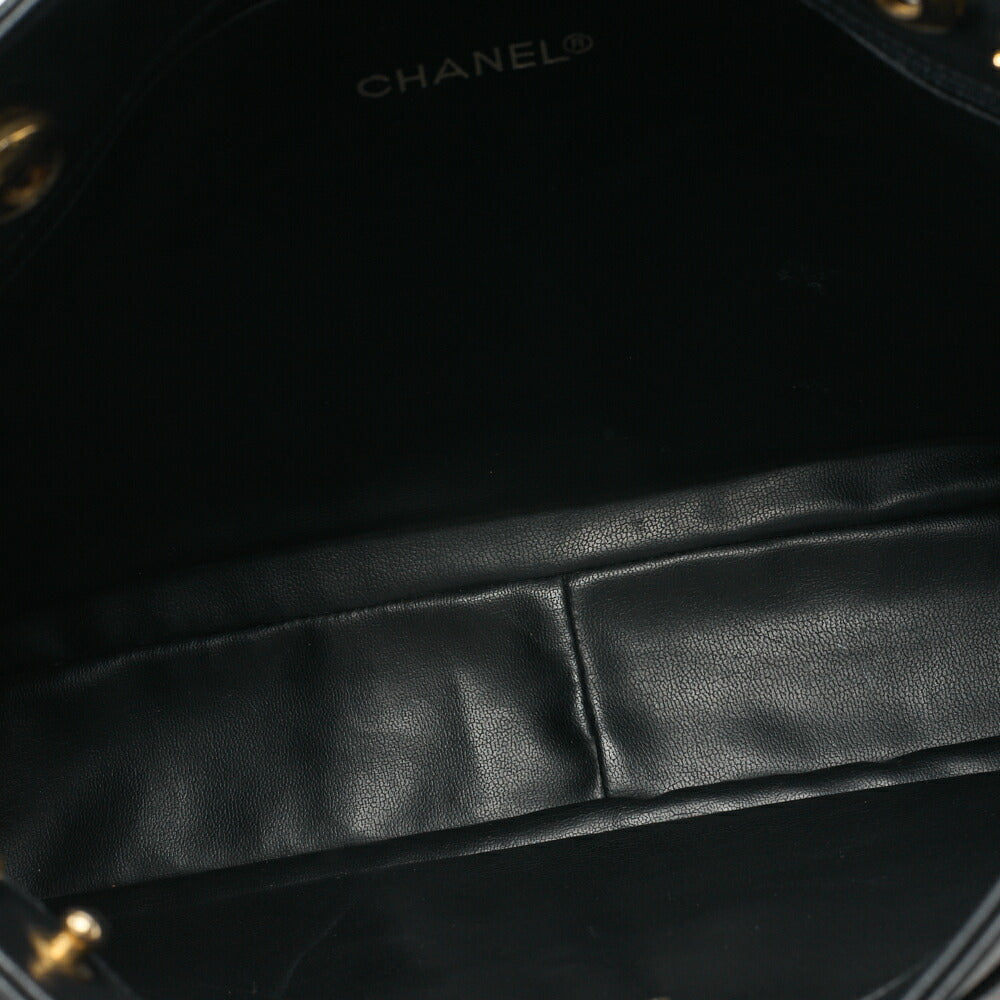 Gebrauchte Schultertasche Triple Coco Doppelkette Schulter Caviar Skin Schwarz Goldfarbene Hardware Gebraucht