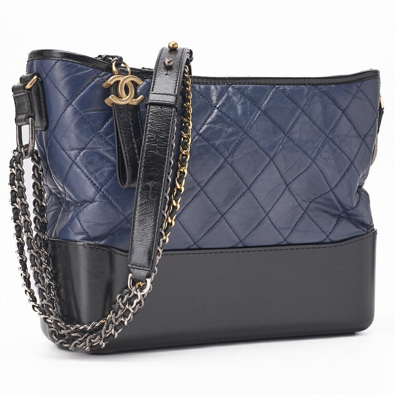 Pre-Owned Kette Schultertasche Matelasse Vintage Kalbsleder Schwarz Navy Gold-Ton Hardware Pre-Owned