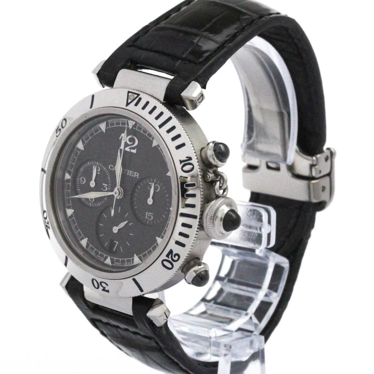 Pre-Owned CARTIER Pasha N950 Chronograph Platinum Steel Watch W3105155 Polished