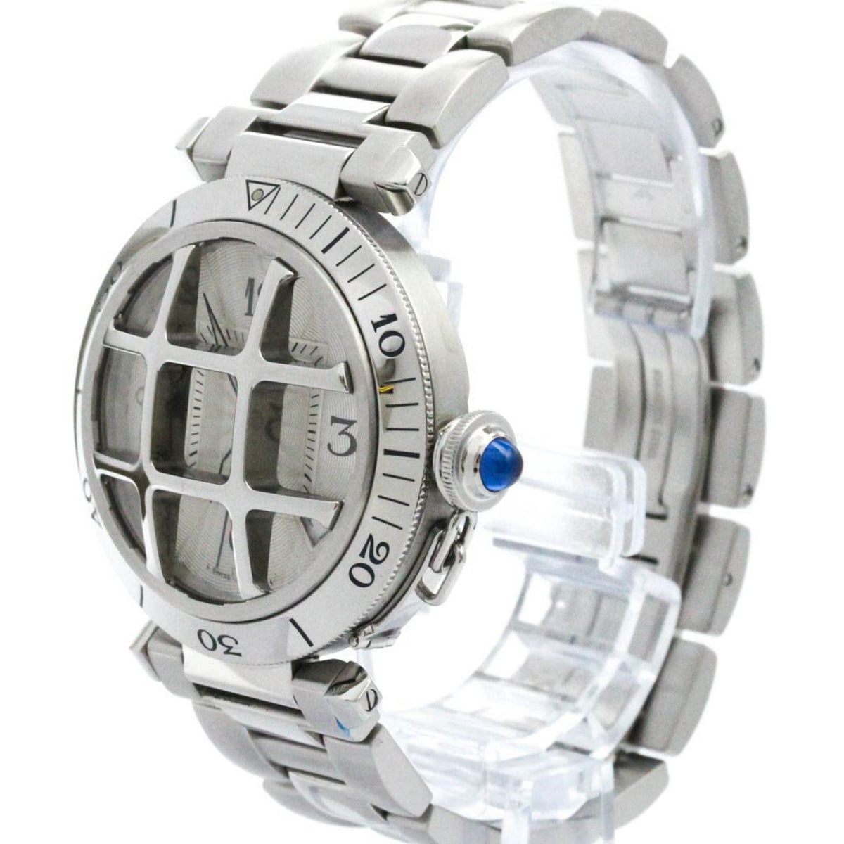 Gebrauchte, polierte Cartier Pasha 38 Grid Steel Automatik-Herrenuhr W31059H3 BF580579