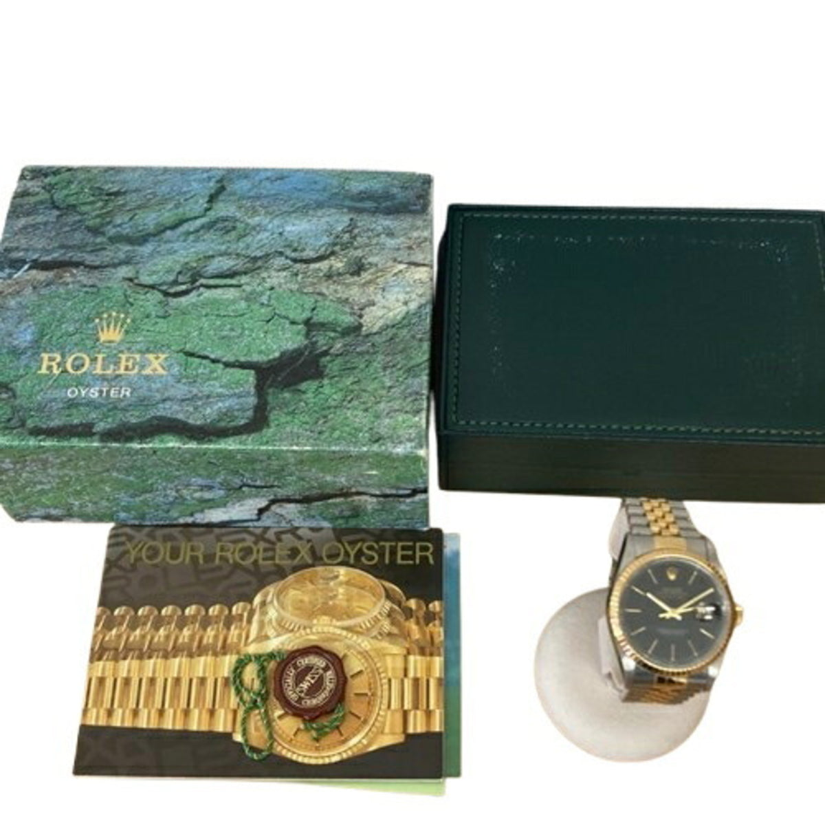 Pre-Owned Rolex Datejust 16233 S-series Black Men's Watch, Stainless Steel/Yellow Gold Combination