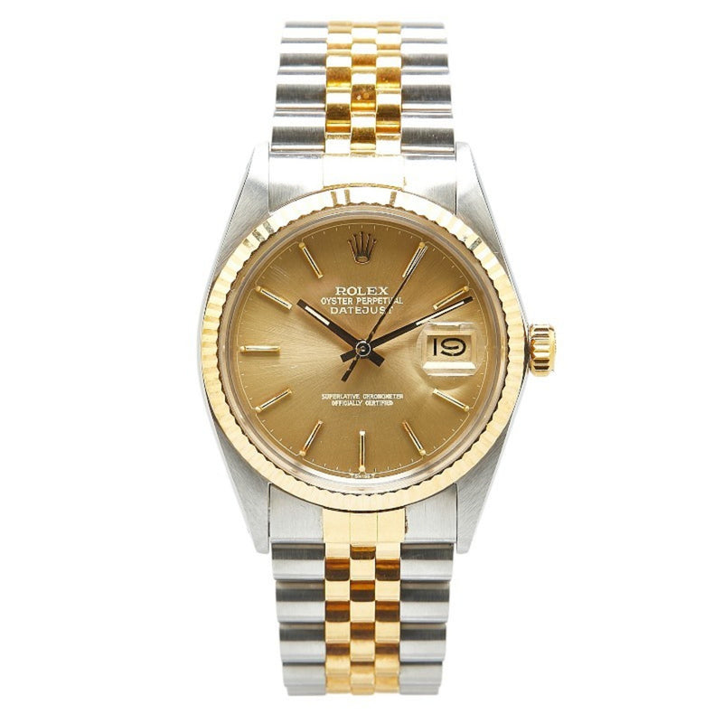Gebrauchte Rolex Datejust Uhr 16013 Automatik Gold Zifferblatt Edelstahl K18YG Gelb Herren ROLEX