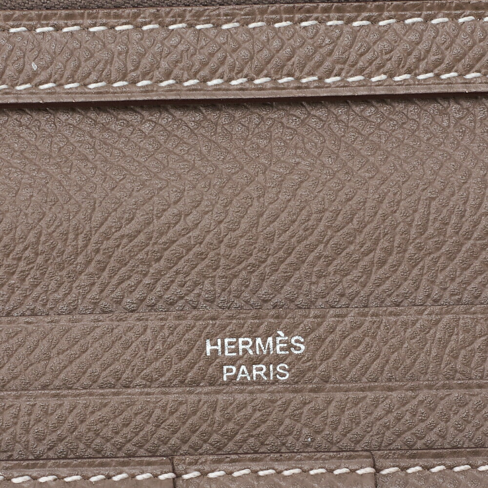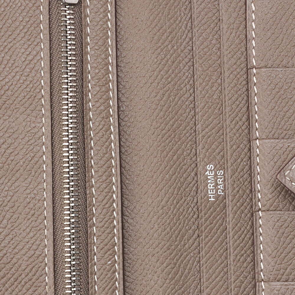 Wir präsentieren die exquisite HERMES Hermes Bearn Soufflet 2 Fold Long Wallet in zeitlosem Epson Etoupe , verziert mit eleganten silbernen Metallbeschlägen . Diese luxuriöse Damenbrieftasche vereint Stil und Funktionalität perfekt und wurde für die moderne Frau entworfen, die sowohl Ästhetik als auch Funktionalität schätzt.