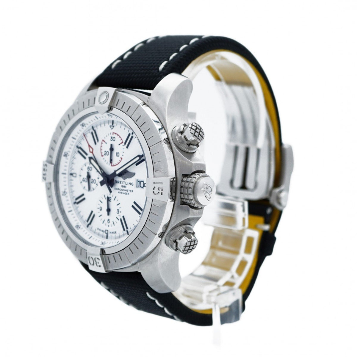 Gebrauchte Breitling Avenger A13375 Herrenuhr mit weißem Zifferblatt