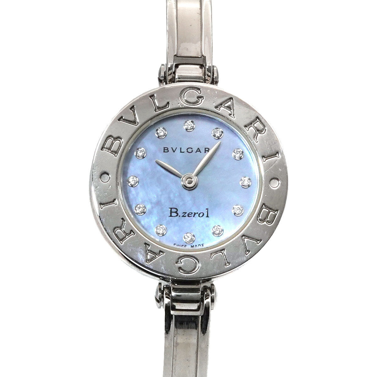 Pre-Owned BVLGARI B-Zero1 BZ22S Women's Bangle Watch with 12 Diamonds, Blue Shell, and Quartz Movement