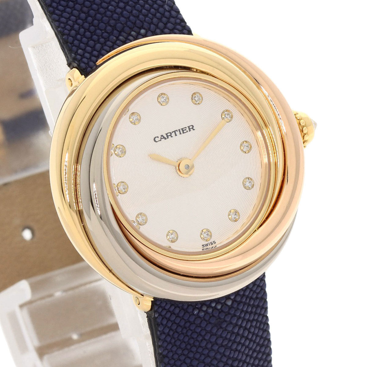 Pre-Owned Cartier WG200256 Trinity 12P Diamond Watch, 18K/Leather/18K Three-Tone, Women's