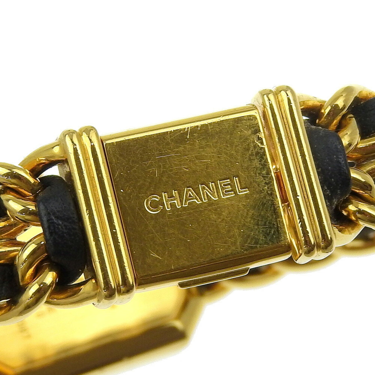 Gebrauchte CHANEL Premiere L Uhr H0001 vergoldet x geprägtes Leder Quarz Analoganzeige schwarzes Zifferblatt Damen
