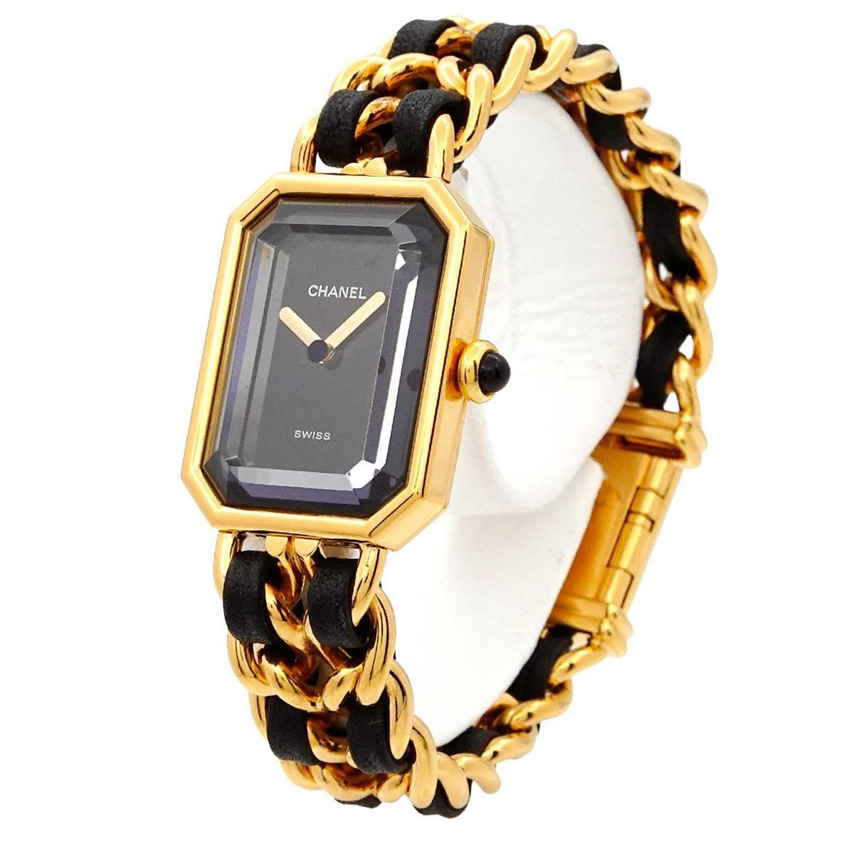 Gebrauchte CHANEL Premiere S Größe H0001 Damenuhr Schwarz Gold Quarz