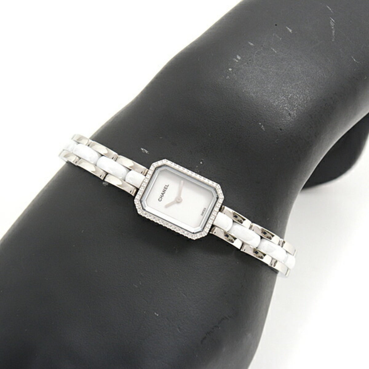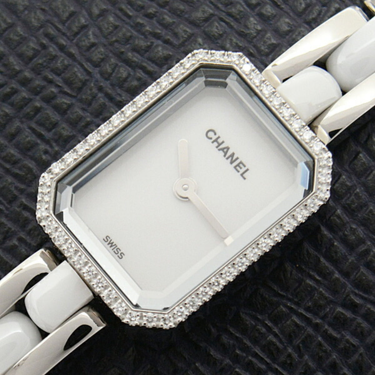 Gebrauchte Chanel Damenuhr Premiere Diamantlünette Batteriebetrieben Weißes Zifferblatt Edelstahl Keramik CHANEL H2132