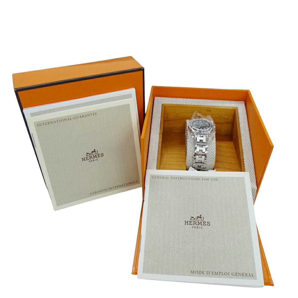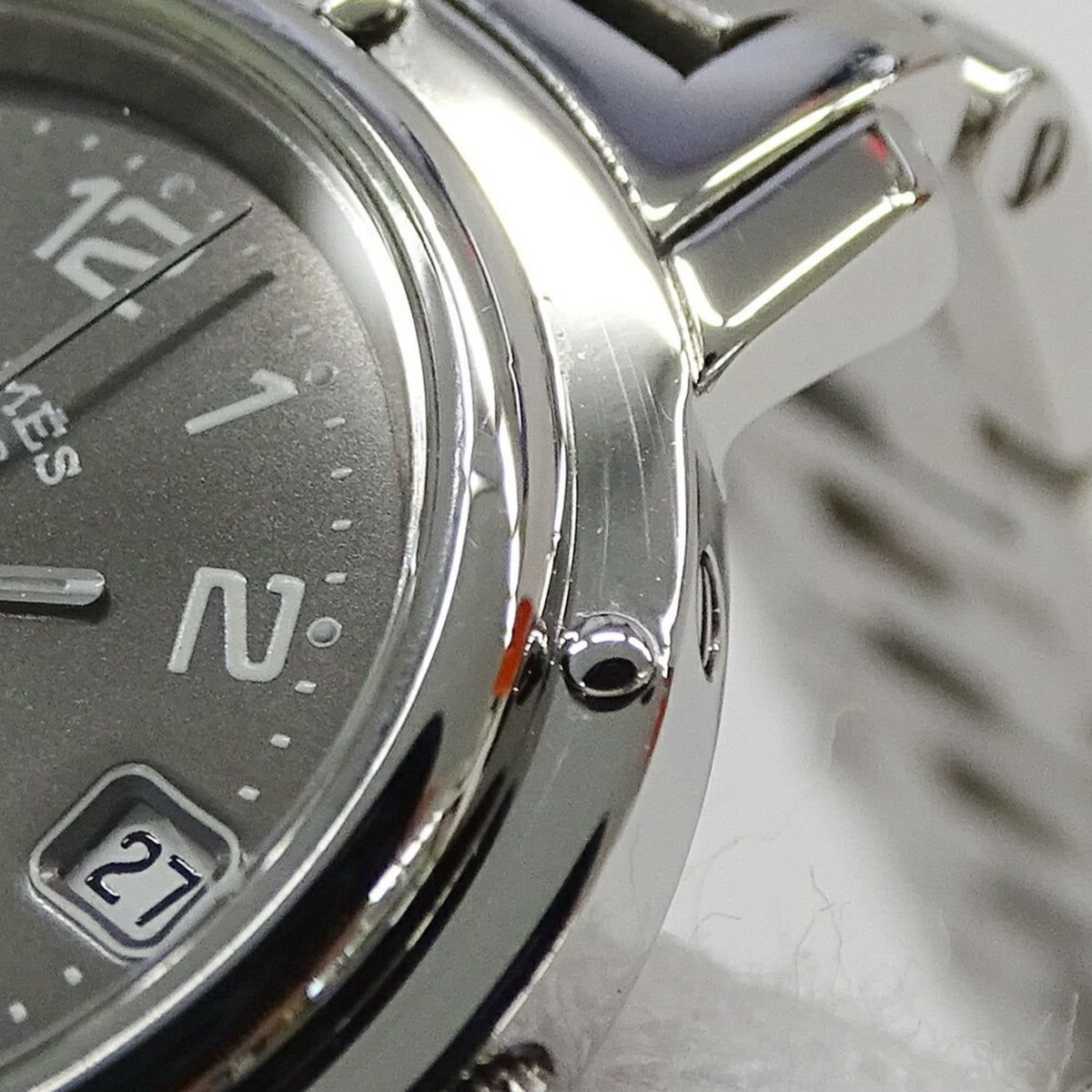 Pre-Owned Herm?s Clipper Date Quartz Stainless Steel Watch CL4.210, Silver Gray, Polished
