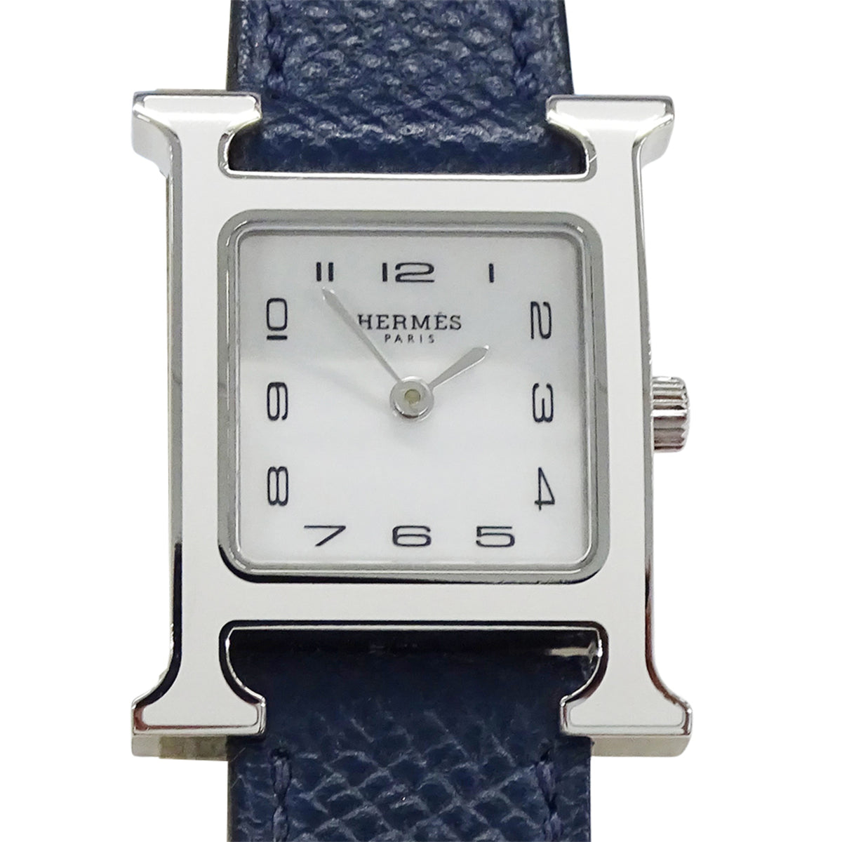 Pre-Owned Herm?s H Watch Women's Quartz QZ Stainless Steel with Leather Strap HH1.220 White Navy Polished