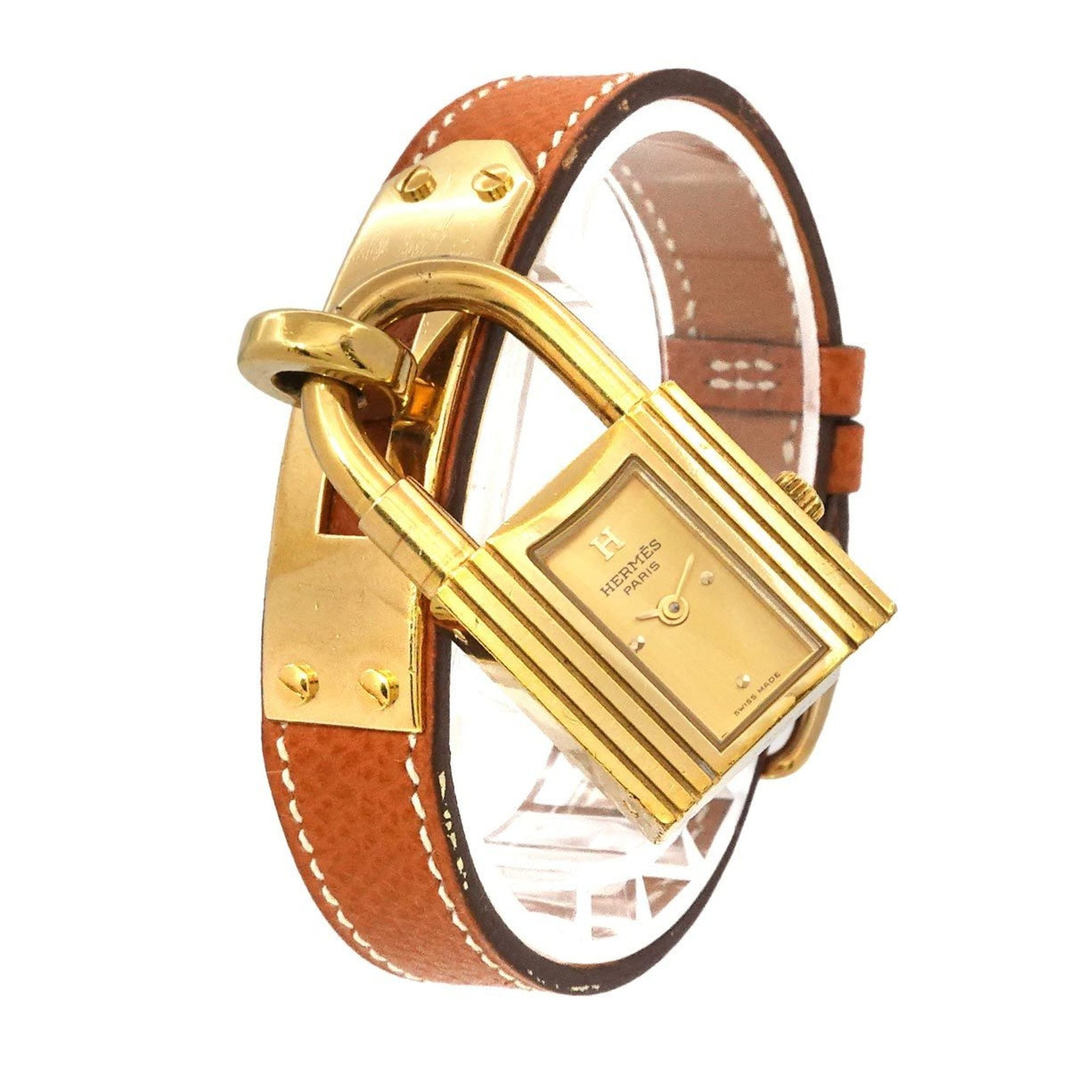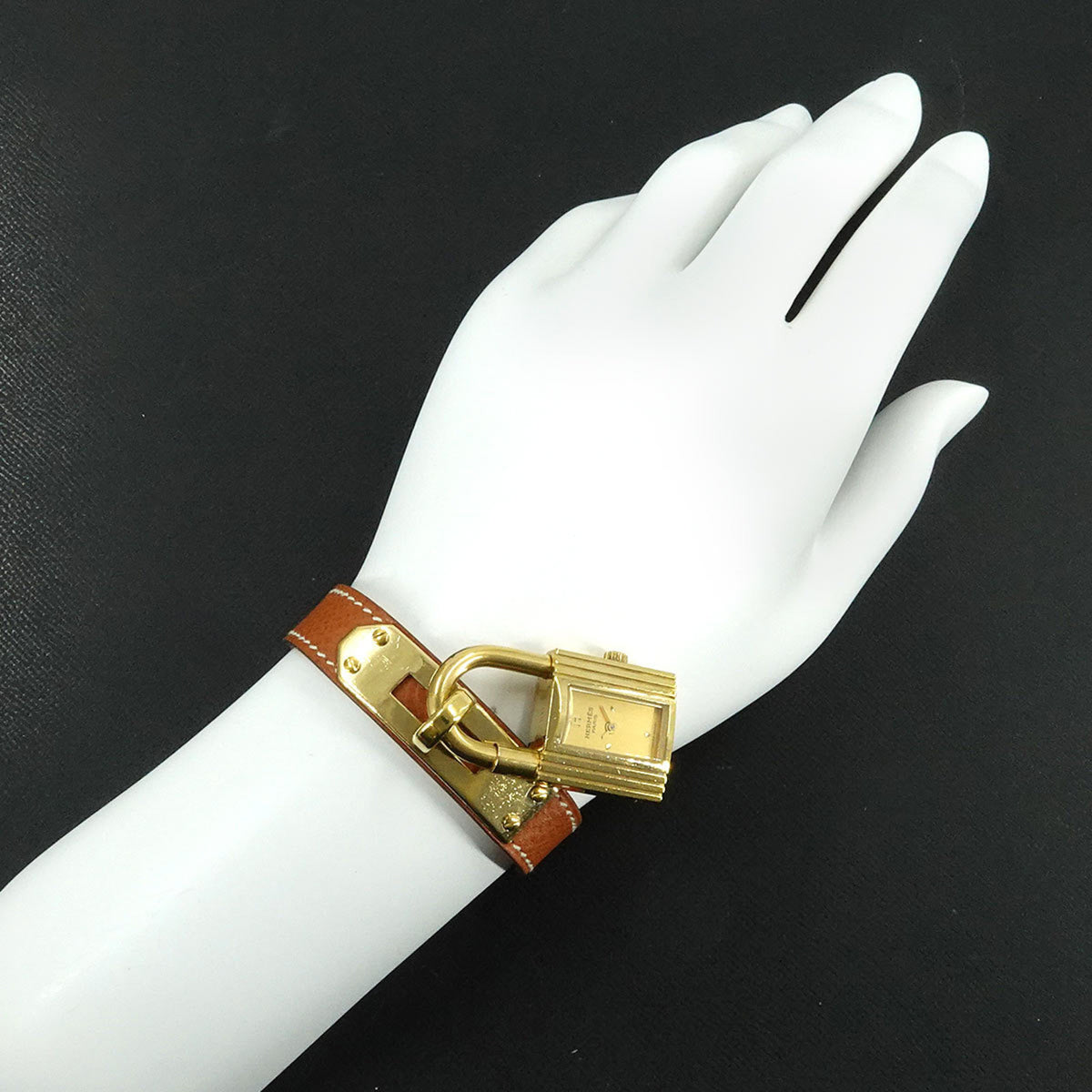 Pre-Owned Herm?s Kelly Watch Women's Gold Brown Quartz with Cadena