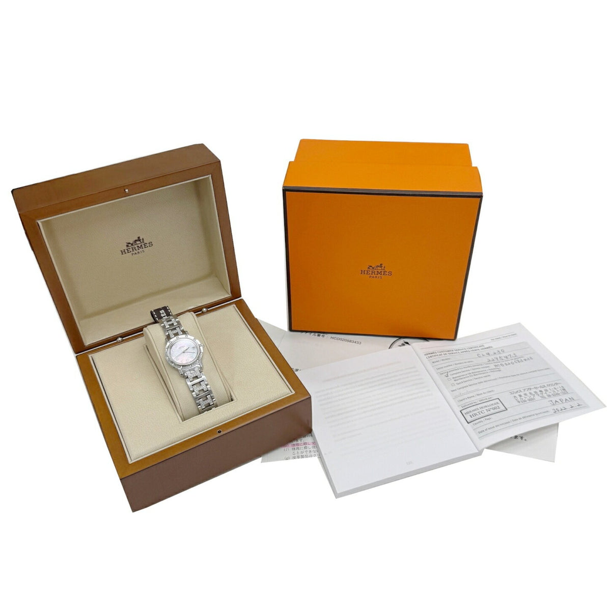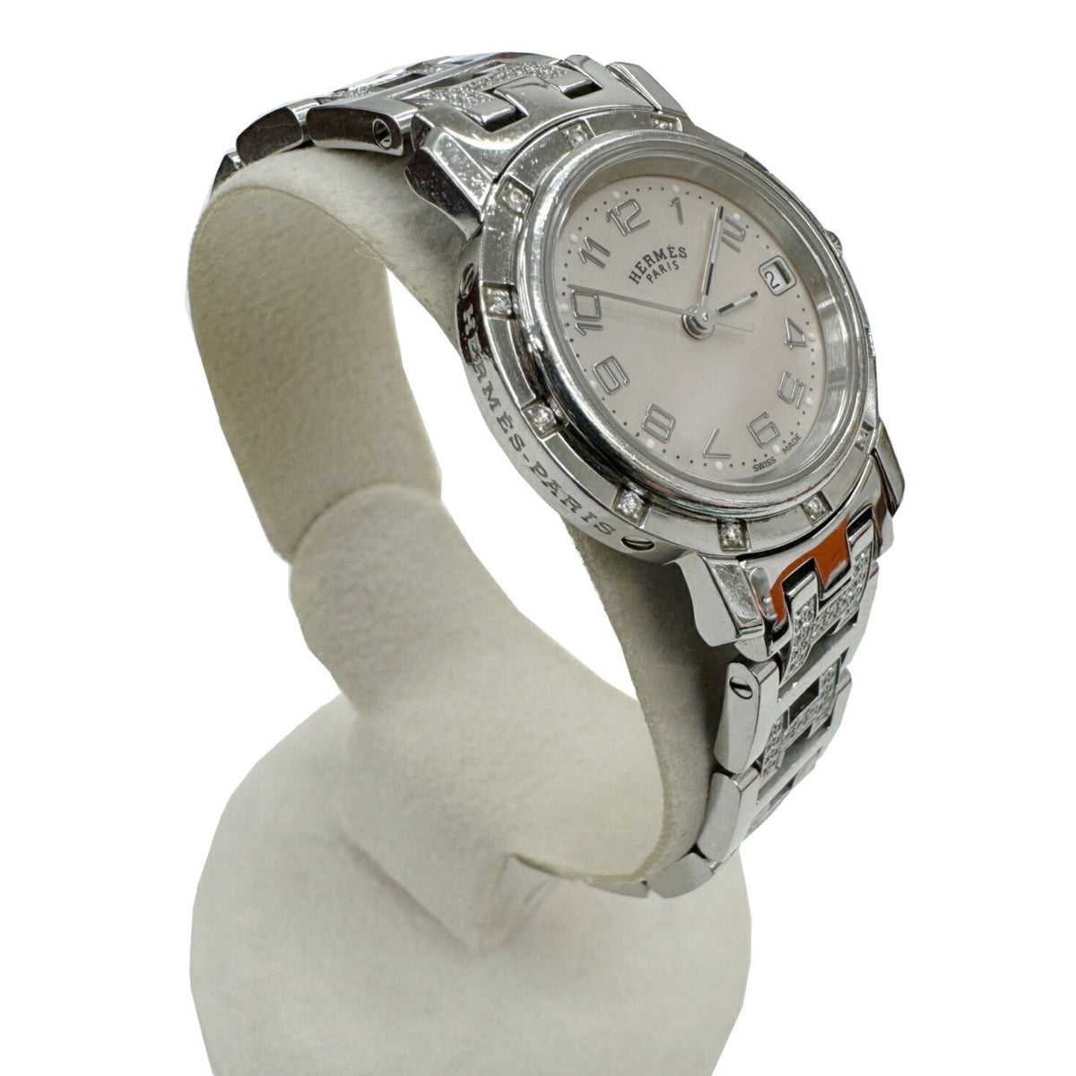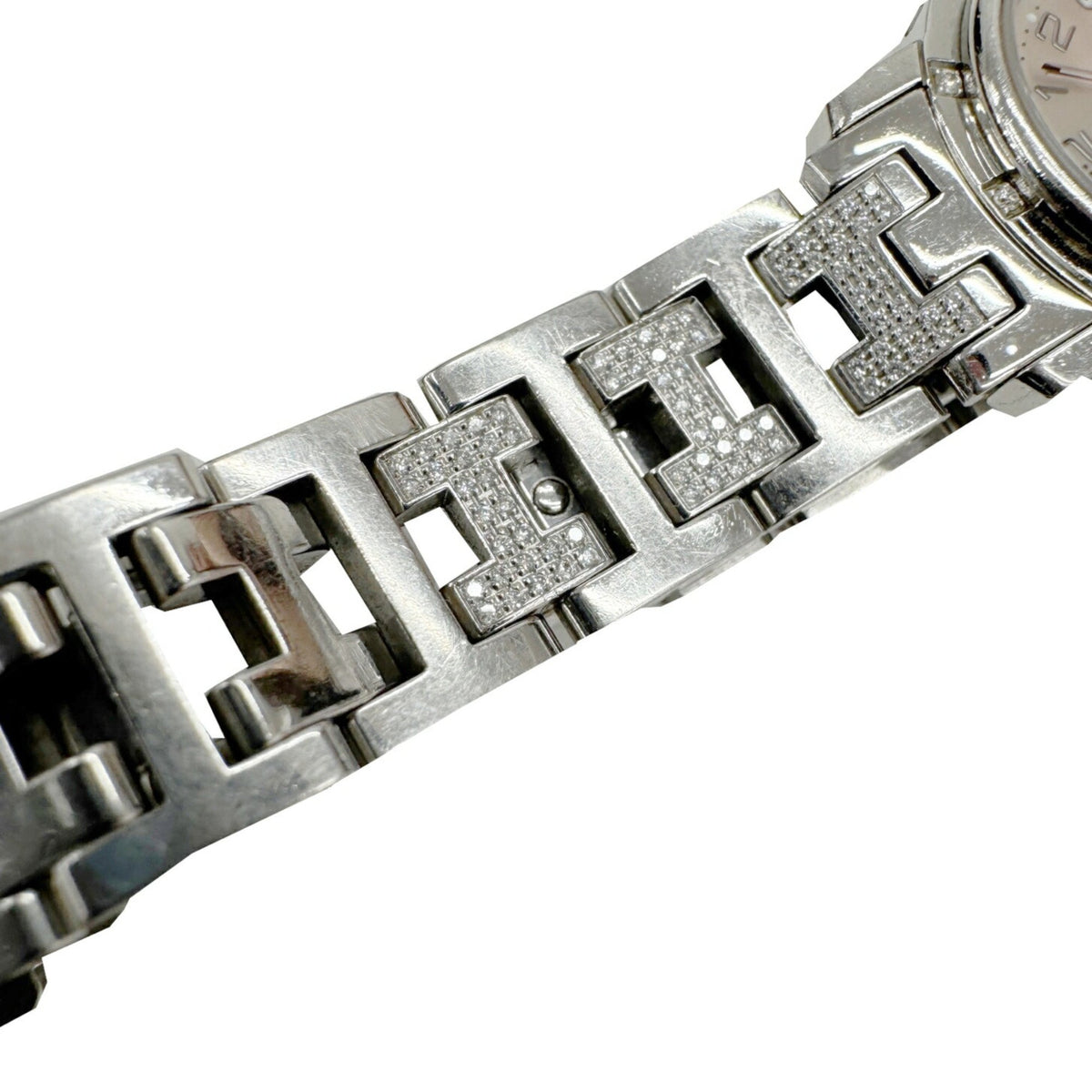 Gebrauchte HERMES Clipper Nacle CL4.230.214 3870 Stück limitierte Auflage Kalender 12-Punkt-Diamant-Lünette H-Gurt rosa Muschelzifferblatt SS Quarz analoge Armbanduhr Damen