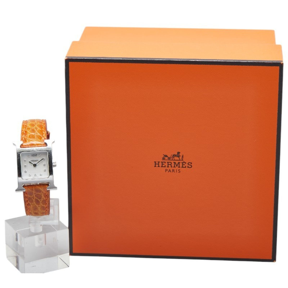 Gebrauchte Hermes H Uhr 11P Diamant Armbanduhr HH1.210 Quarz Silber Zifferblatt Edelstahl Leder Damen HERMES