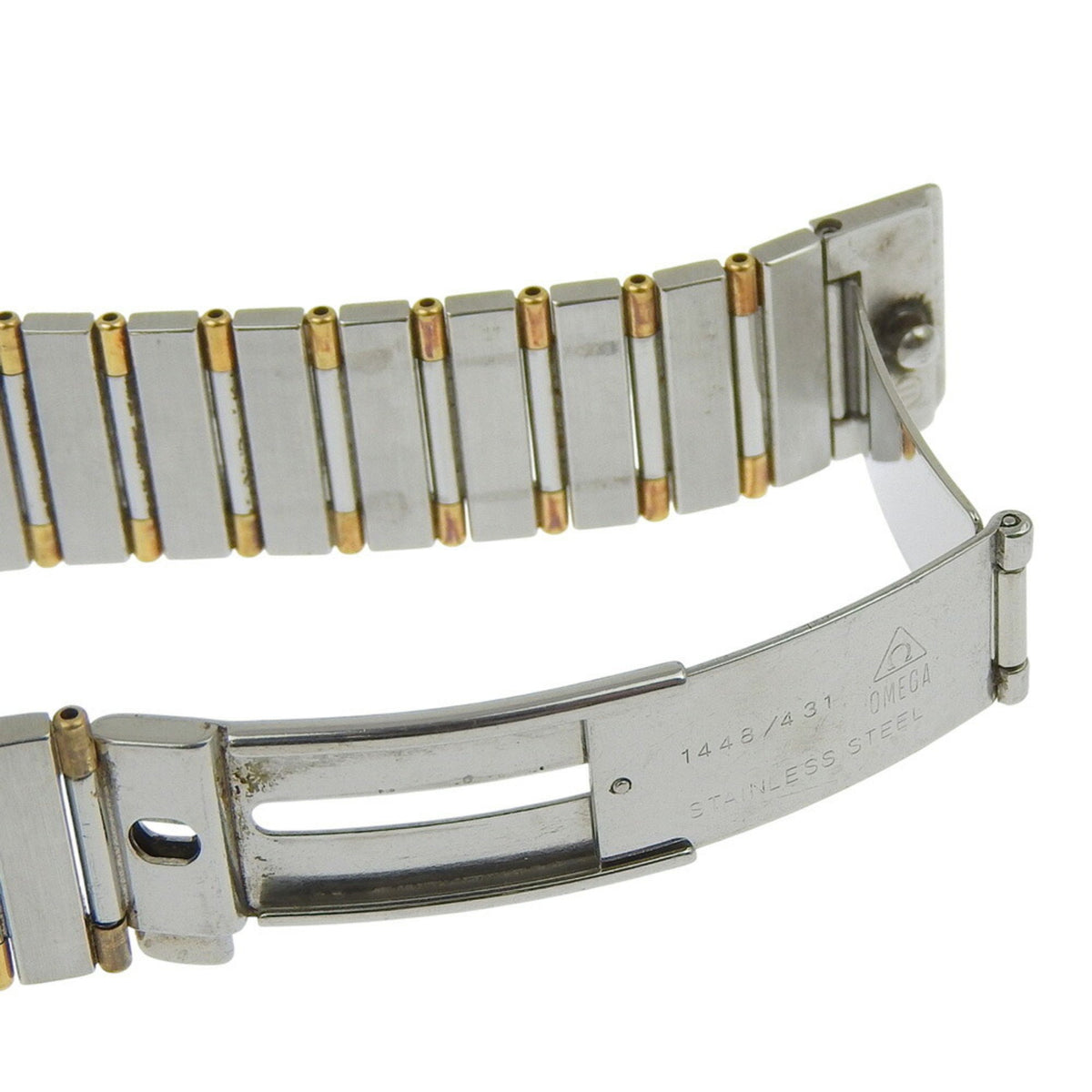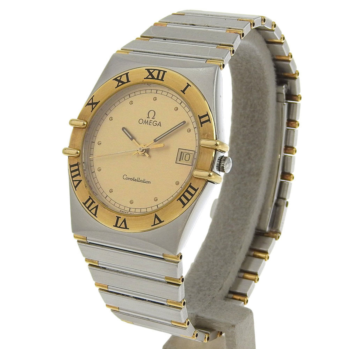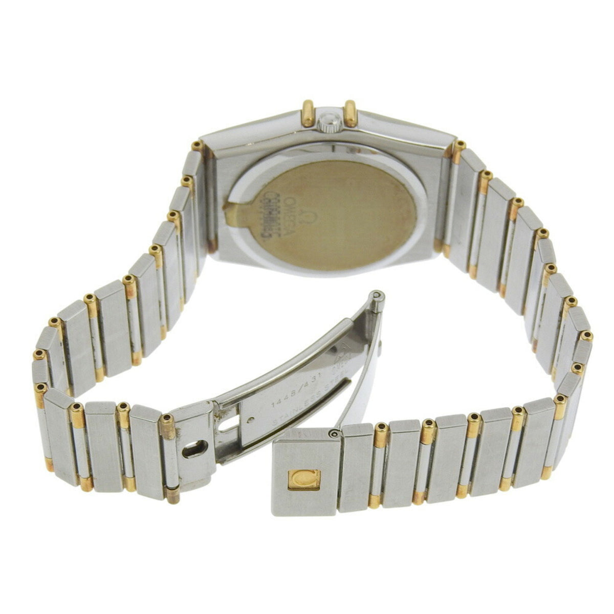 Pre-Owned OMEGA Constellation watch, caliber 1441 1448.431, stainless steel with yellow gold, 1989, quartz movement, analog display, gold dial, men's.