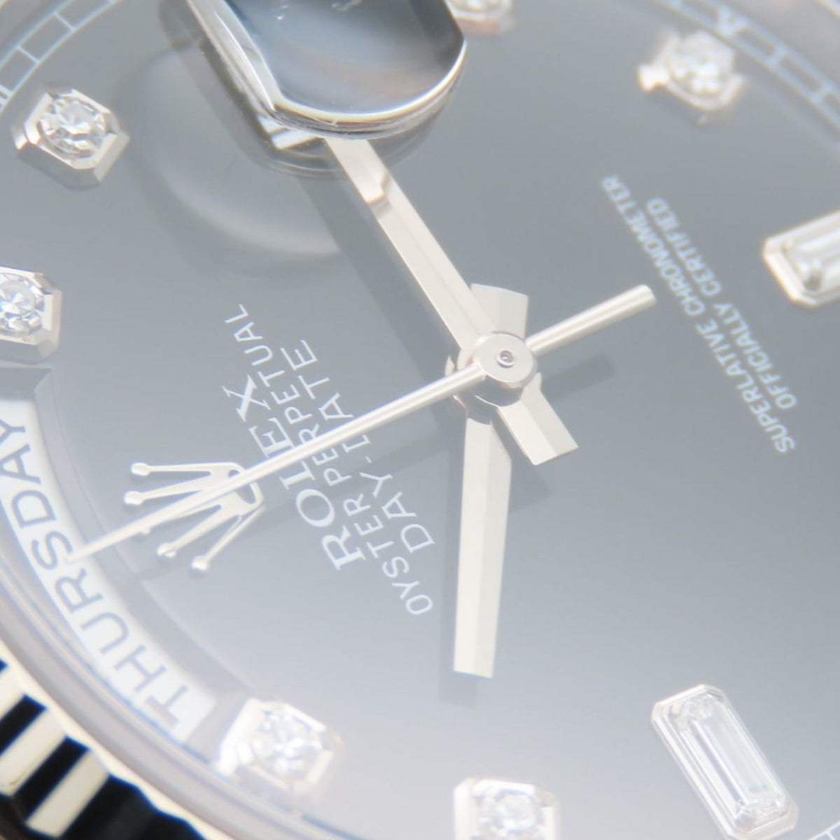 Pre-Owned Rolex Day-Date Watch 118239A, 18K White Gold with Diamonds, Approximately 170.8g, Silver, Black Dial, Roulette, 8PD, 2-Piece Bucket, Men's, ROLEX