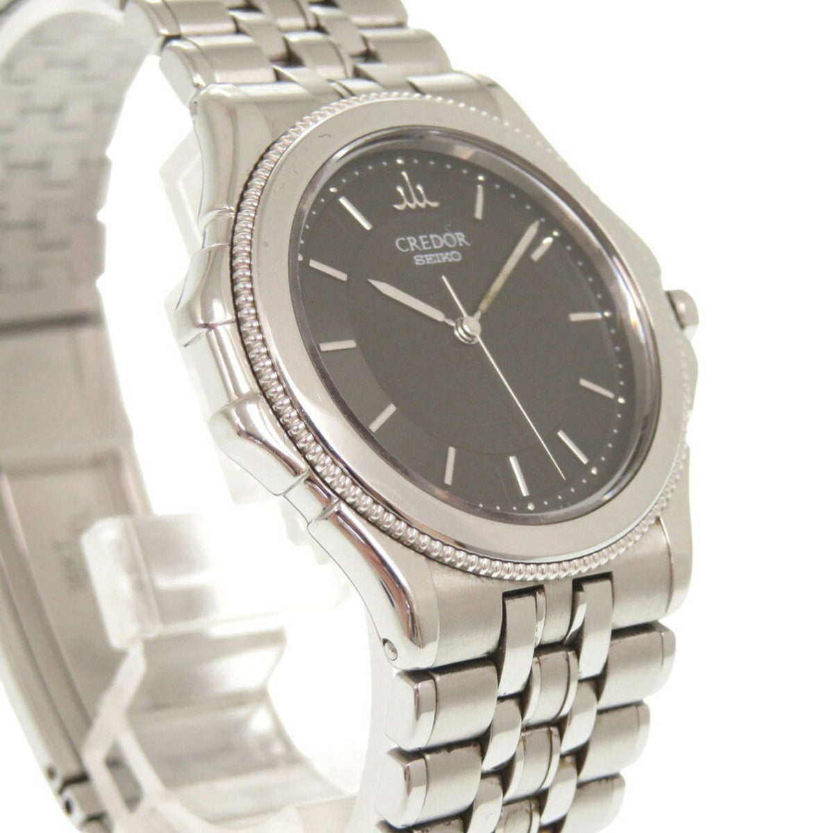 Gebrauchte Seiko Credor Pacific GCAR007 8J81-6A20 SS 18K Weißgold Schwarze Quarz-Armbanduhr Silbernes Zifferblatt 0040SEIKO