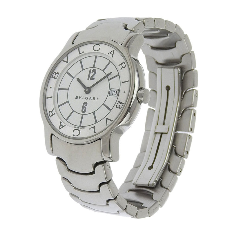 Gebrauchte Bvlgari Solo Tempo Uhr ST35S Edelstahl Quarz Analoganzeige Weißes Zifferblatt Unisex
