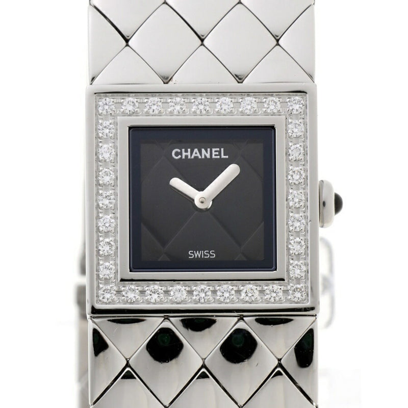 Gebrauchte CHANEL Matelassé Diamantlünette H0489 Schwarze Quarzuhr A-158483