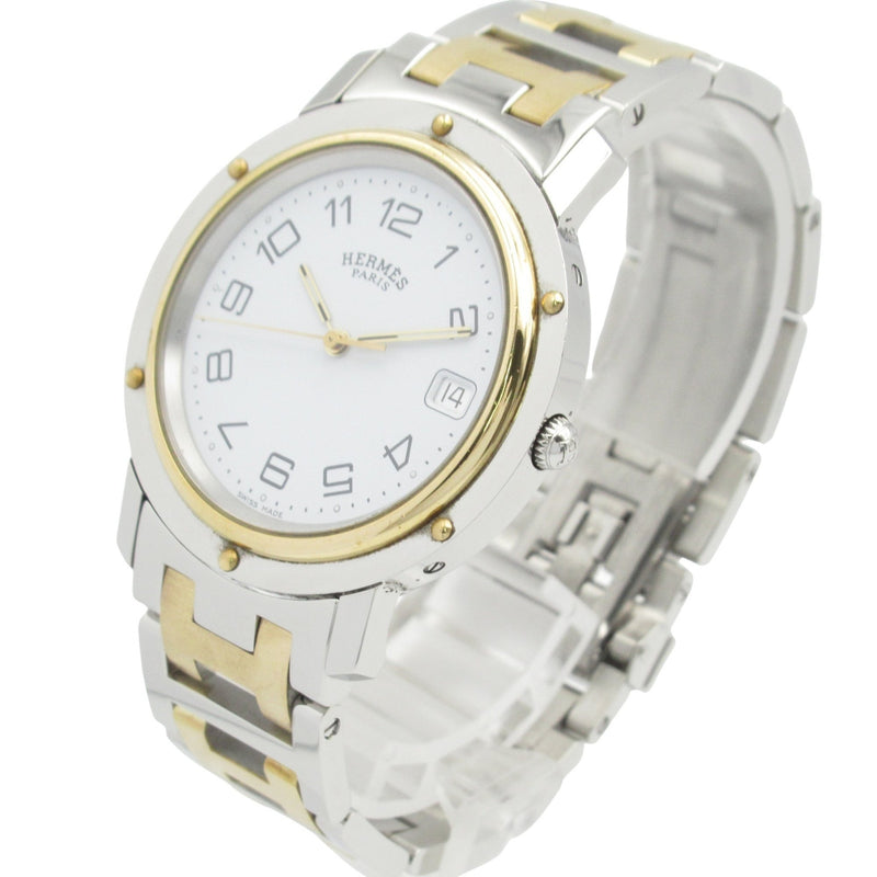 Gebrauchte Hermès Clipper Two-Tone-Uhr, GP (vergoldeter) Edelstahl, Herren, Weiß, CL6.720