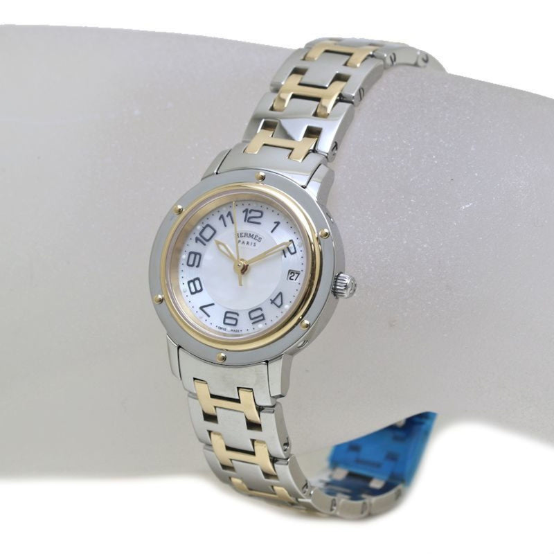 Gebrauchte Hermes CL4.210 Clipper Nacr? Neue Schnalle Uhr Edelstahl SS Damen HERMES