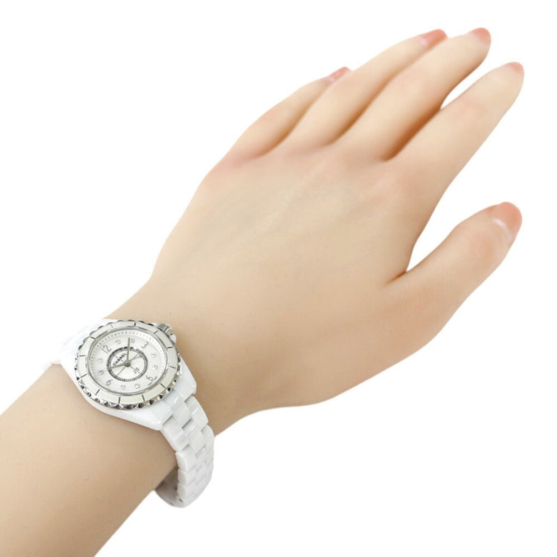Gebrauchte Chanel J12 Uhr, weiße Keramik H2570 Quarz, Damen, CHANEL, 8P Diamant, Muschelzifferblatt