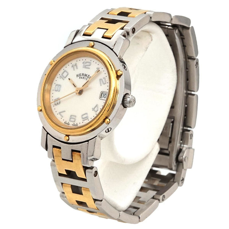 Pre-Owned Herm?s Clipper CL4 220 Women's Two-tone Date White Shell Quartz Watch