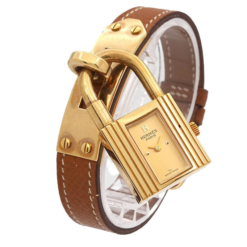 Pre-Owned Herm?s Kelly Watch Women's Gold Brown Quartz with Cadena