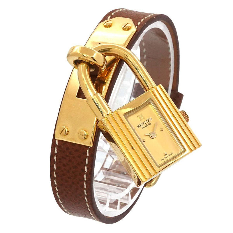 Pre-Owned Herm?s Kelly Watch Women's Gold Brown Quartz with Cadena