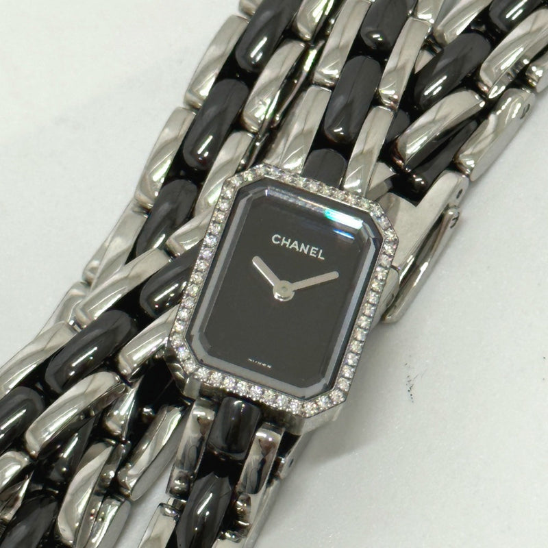 Pre-Owned CHANEL Premiere Triple Bracelet Watch H3058 with Diamond Bezel, Stainless Steel/Ceramic, Black