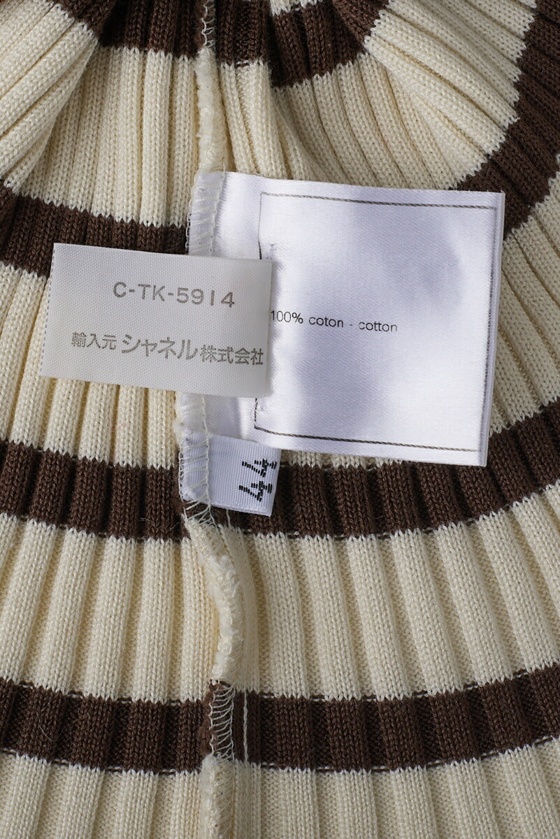 Gebrauchtes T-Shirt, Coco Mark Border, Strick, Baumwolle, Elfenbein, goldfarbene Hardware, gebraucht