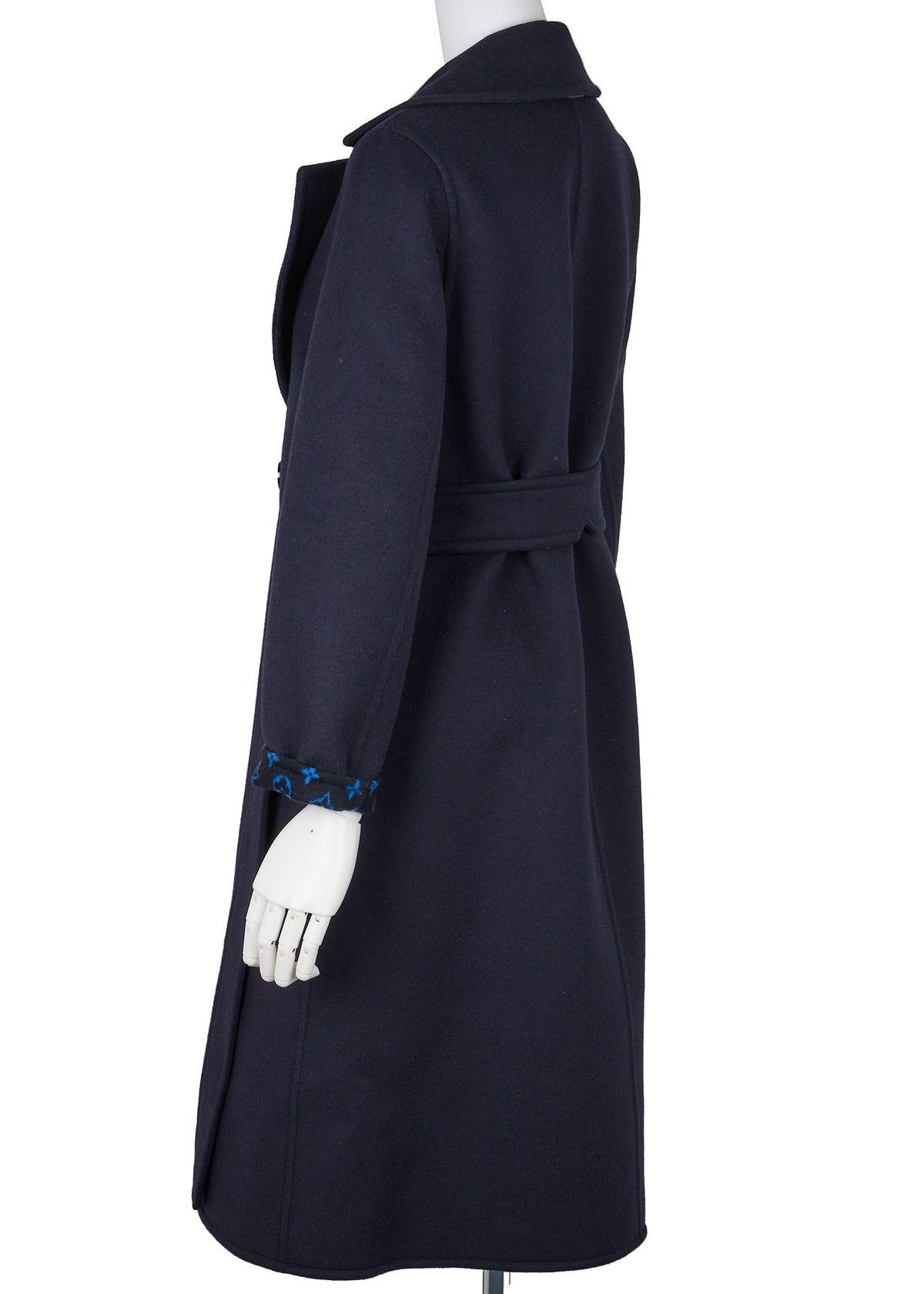 Gebrauchter Vuitton Gown Coat, Monogramm, Woll-Seiden-Mischung, Marineblau, silberfarbene Hardware, Gebraucht