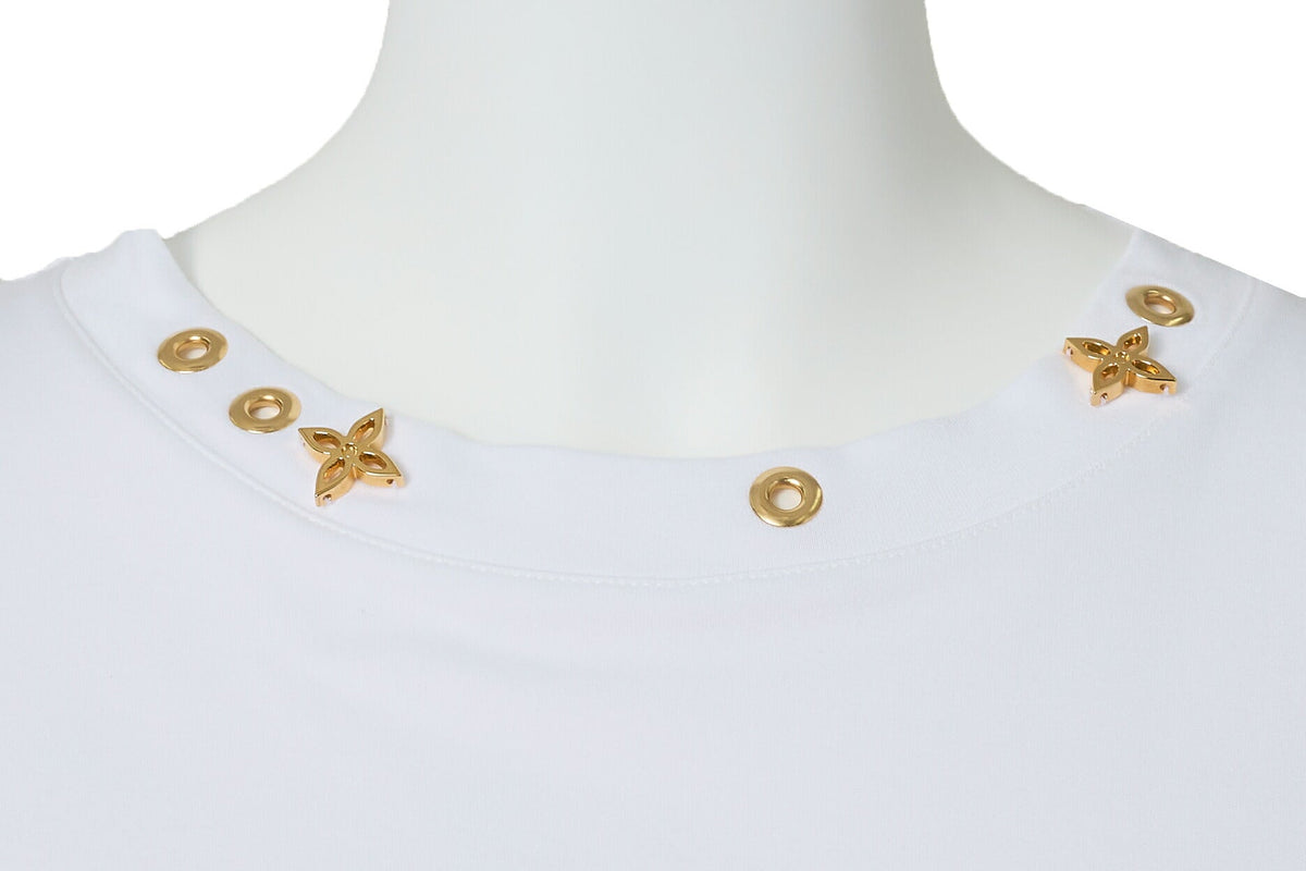 Pre-Owned Vuitton T-Shirt, Seitenriemen mit Nieten, Baumwolle, Weiß, Goldfarbene Metallteile, Pre-Owned
